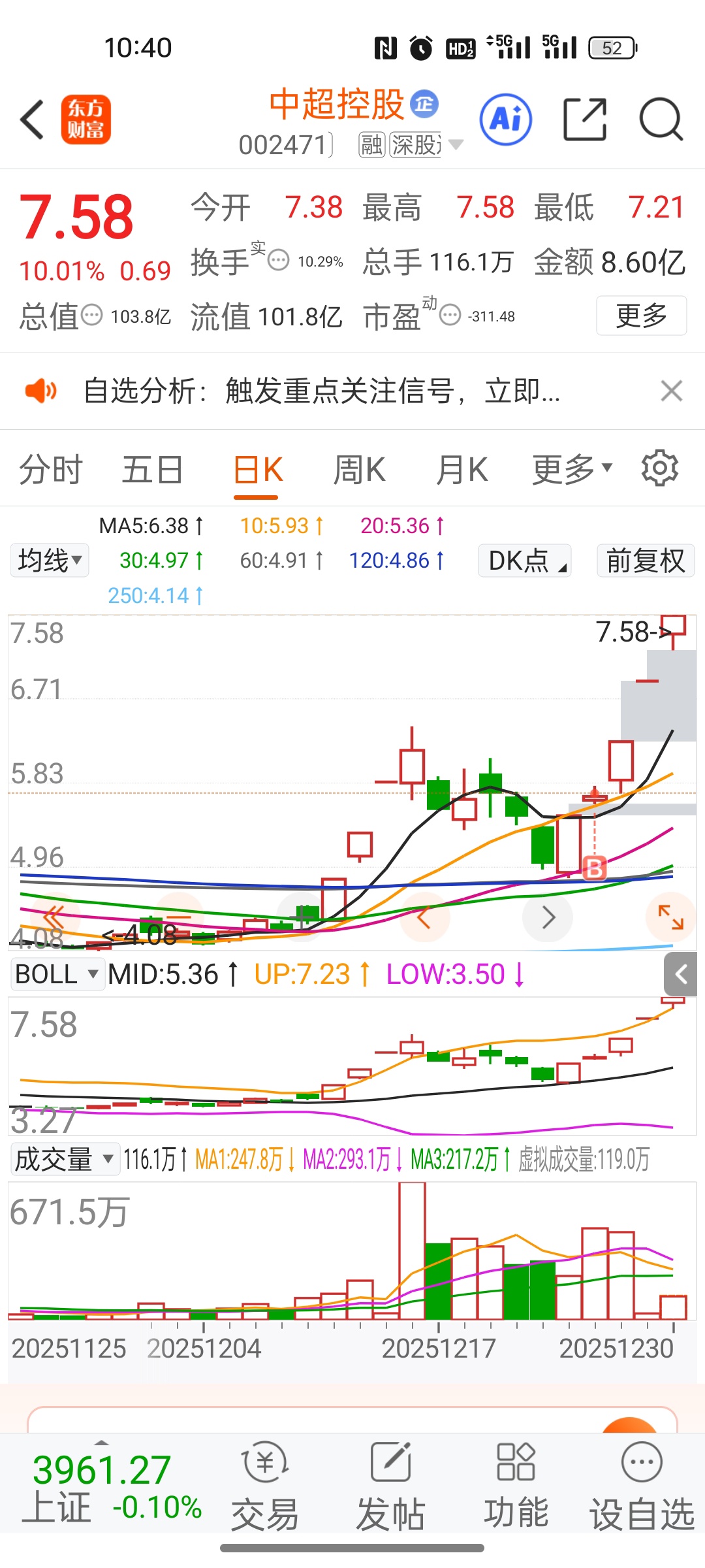 $中超控股(SZ002471)$ 小牛翻跟头牛逼冲天