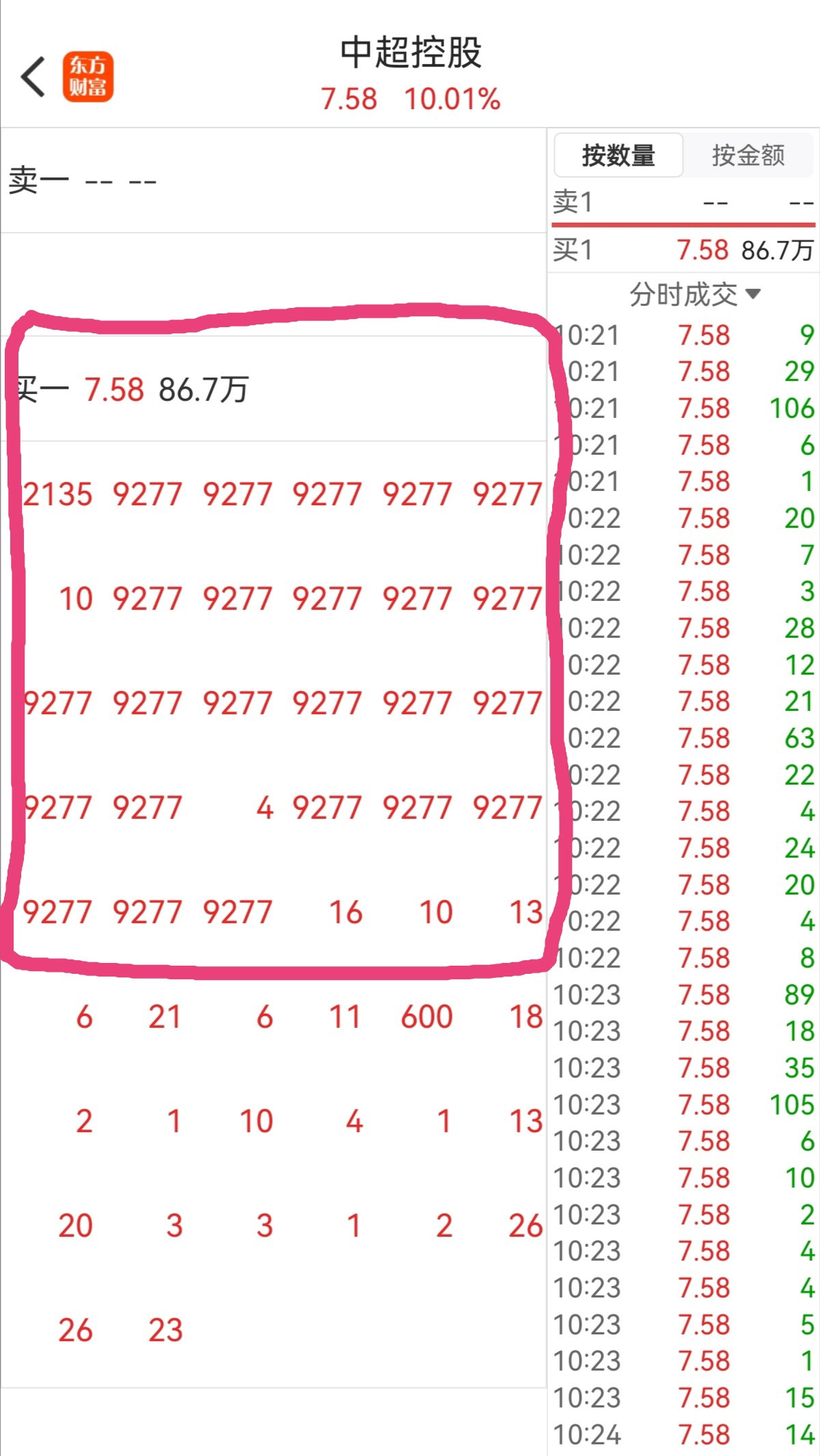 $中超控股(SZ002471)$ 兄弟姐妹们开盘即下班 躺赢爽歪歪,下图↓分析:开盘秒涨停,封单最多9亿多元,撤单后现在还有7亿元左右,排单前排红圈还有近两亿元没有吃到肉,明天躺赢继续躺赢。点赞评论转发顶起来