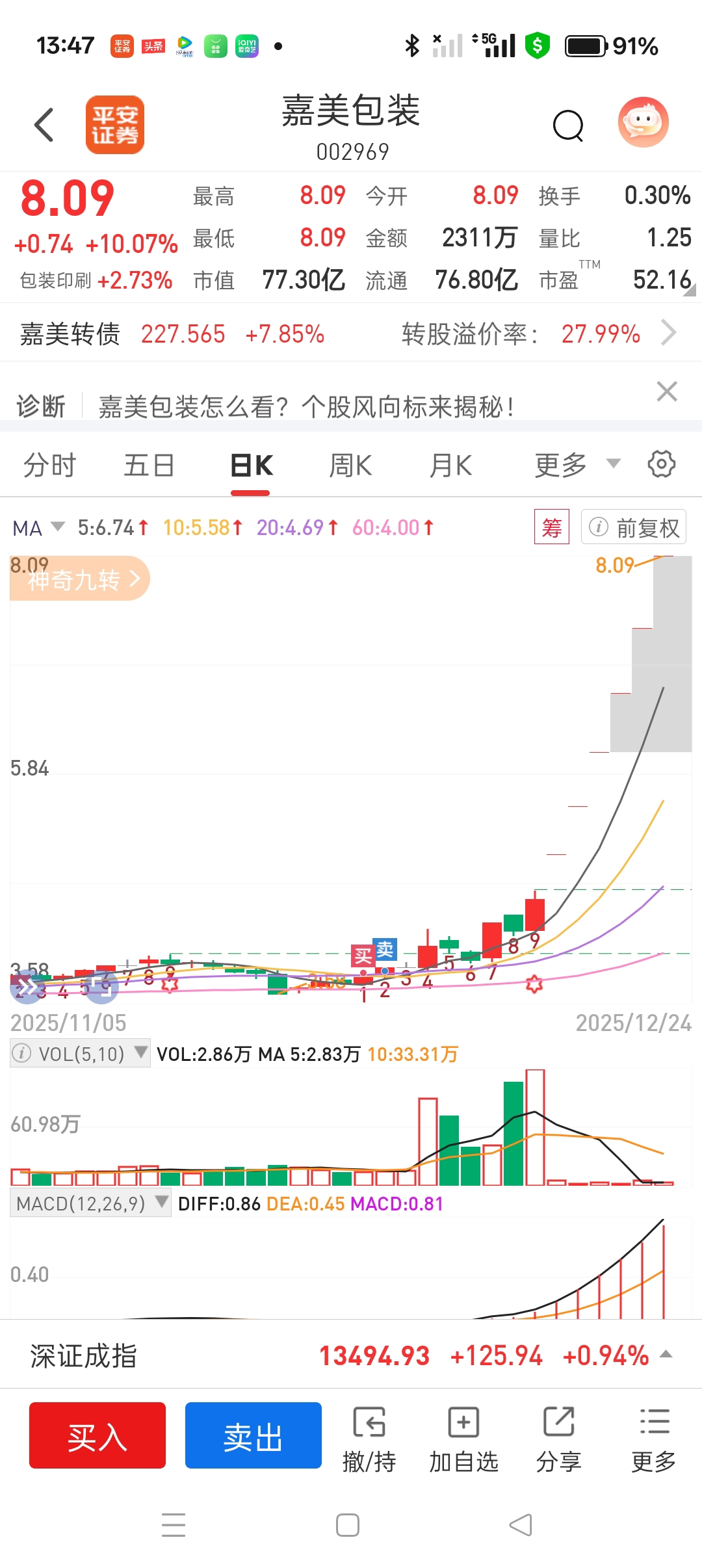 跟我这个一样,怕就卖掉点,但是后期还是主升行情,当然也可以明天竞价把筹码交给主力