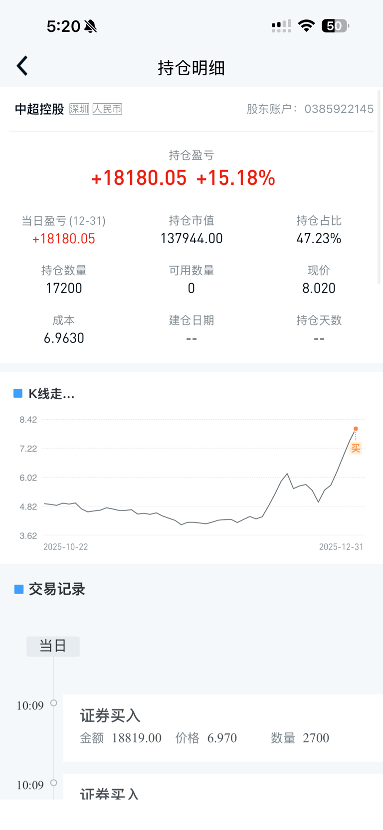 $中超控股(SZ002471)$ 怕个蛋,120的换手都见过,区区50怕什么,抄它就完事了
