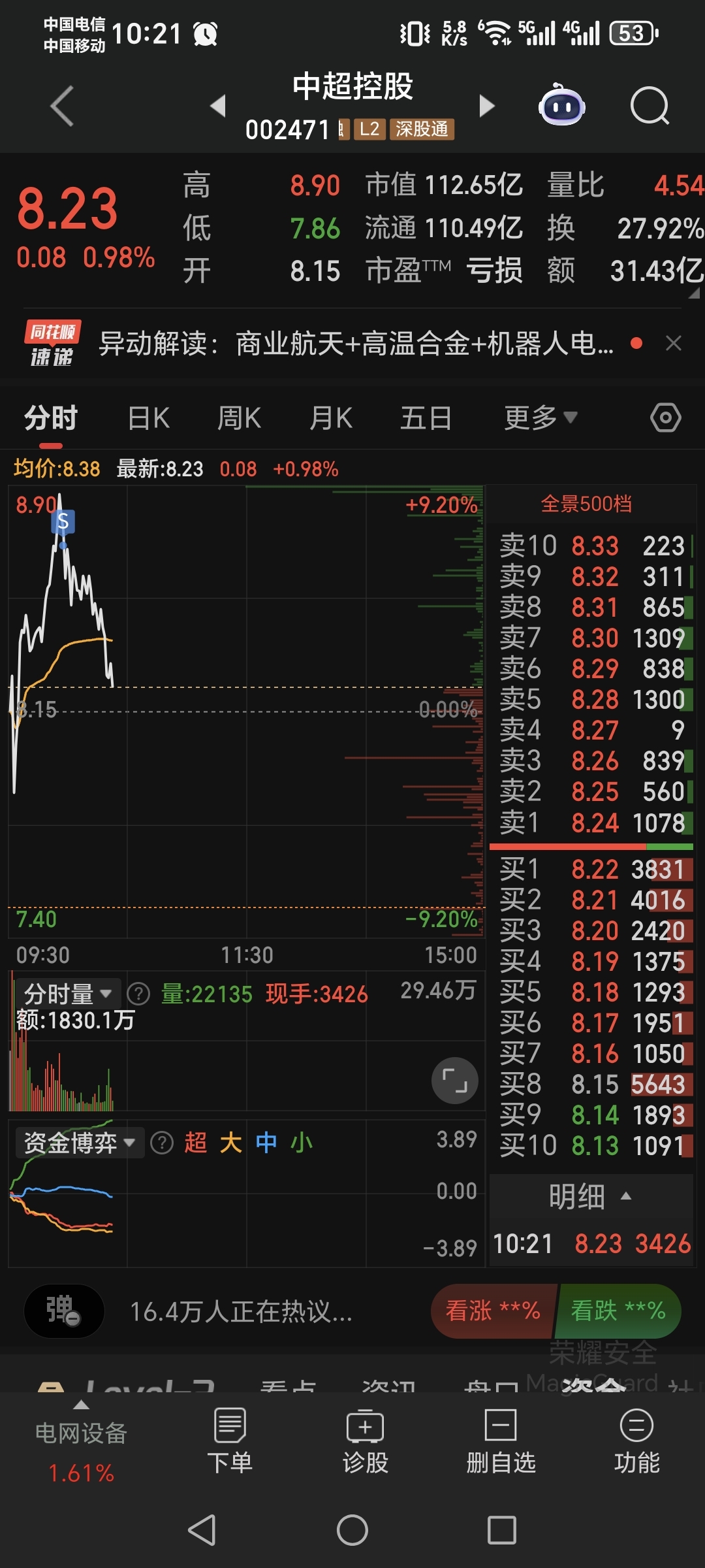 $中超控股(SZ002471)$ 没卖好