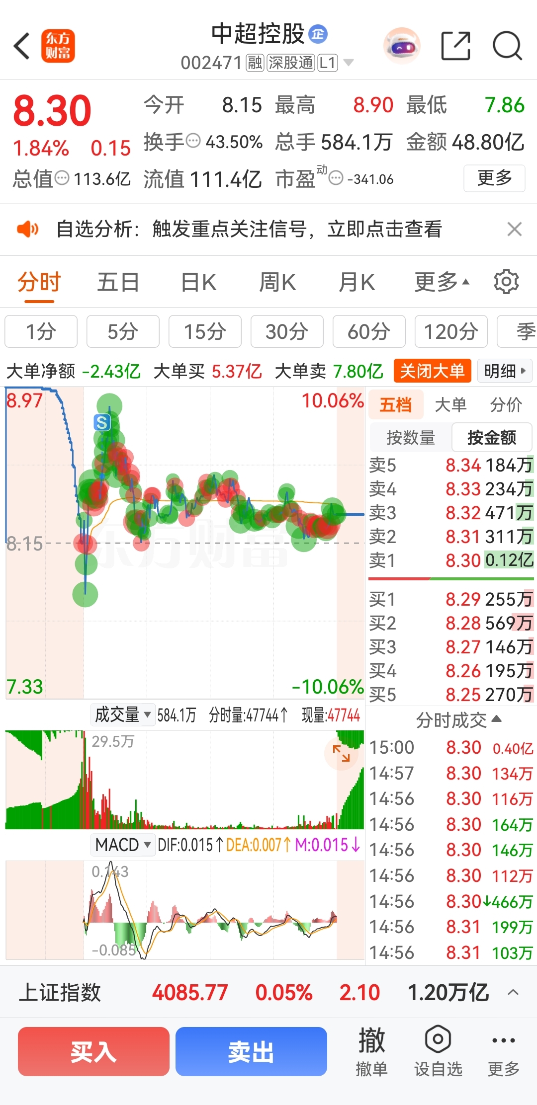 $中超控股(SZ002471)$ 昨天来,今天走了
