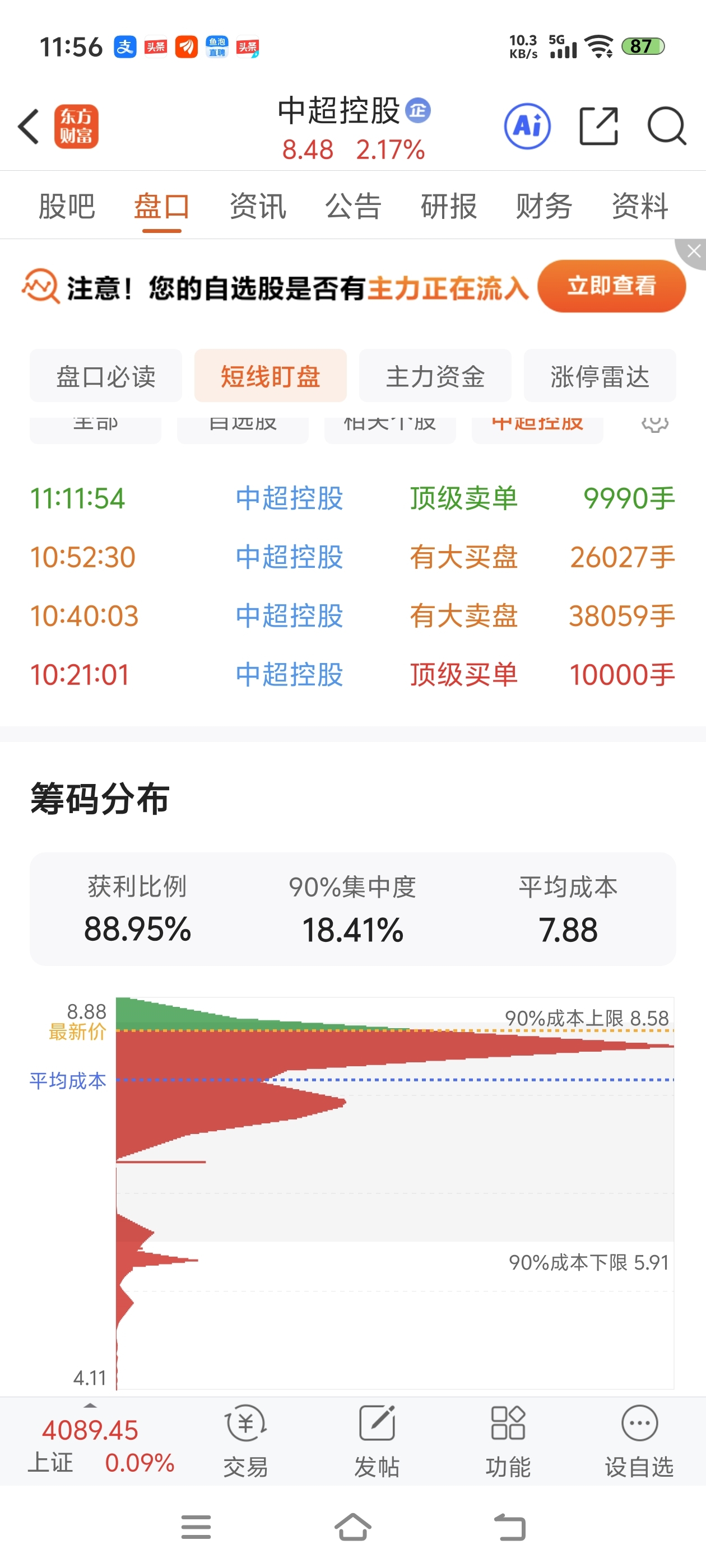 $中超控股(SZ002471)$ 获利盘不少哦!