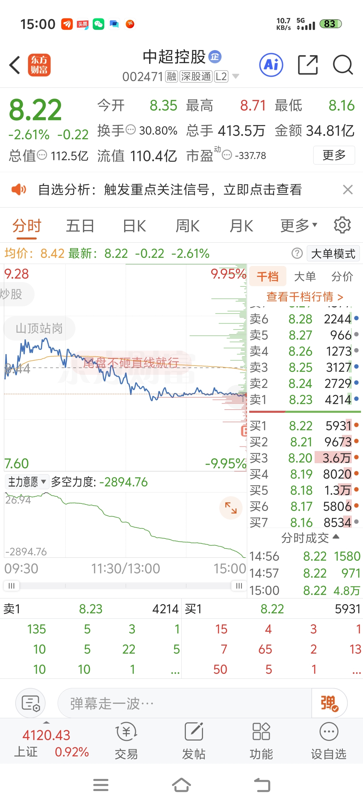 $中超控股(SZ002471)$ 我又来了,尾盘极限上车。