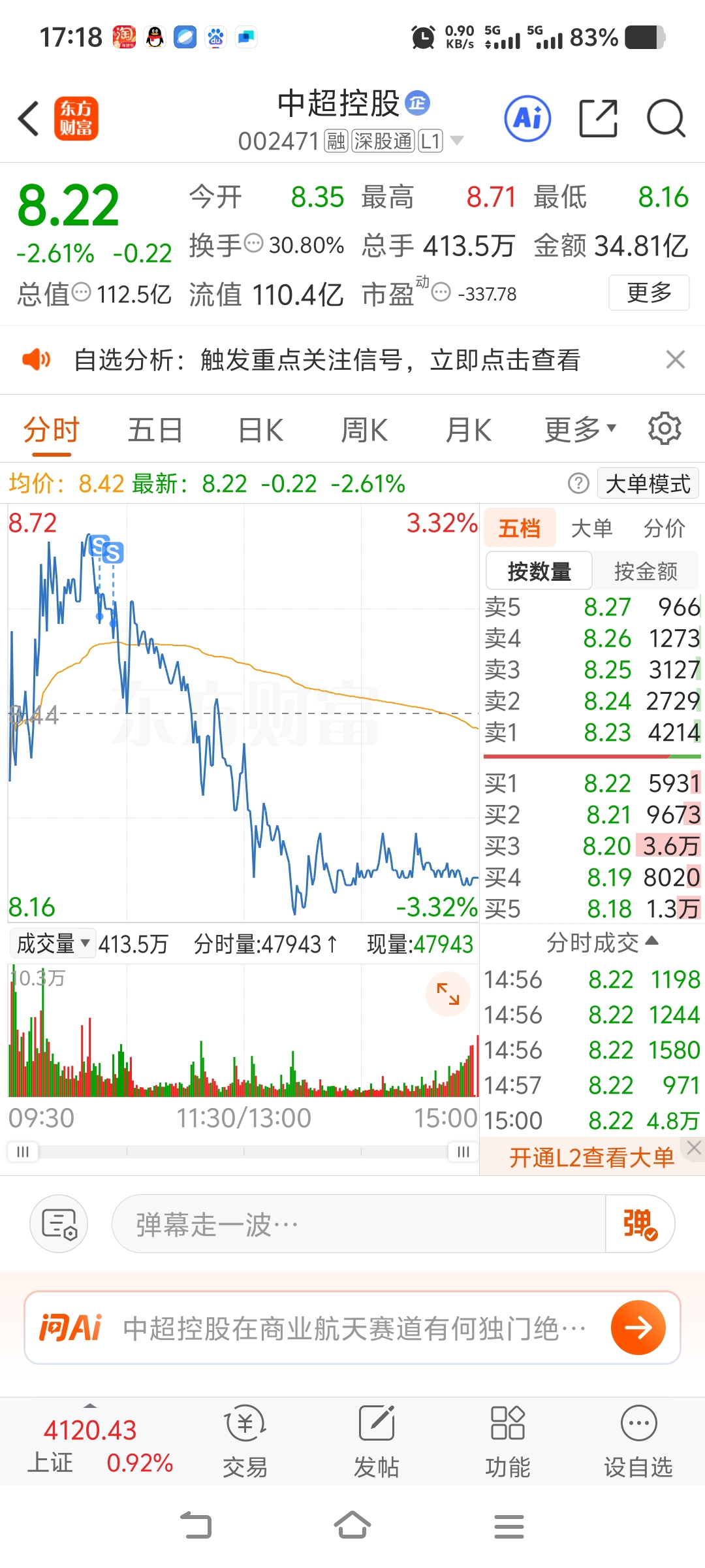 $中超控股(SZ002471)$ 留下来的发财