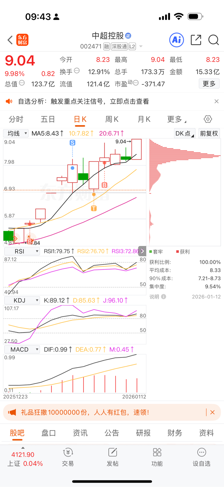 $中超控股(SZ002471)$ 上周拿了11个涨停呀 今天拿了3个 我真的太爱祖国妈妈了 太爱大A了
