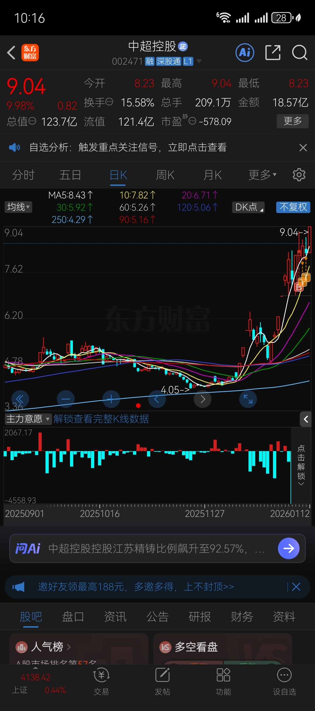 $中超控股(SZ002471)$ 洗出去是不可能