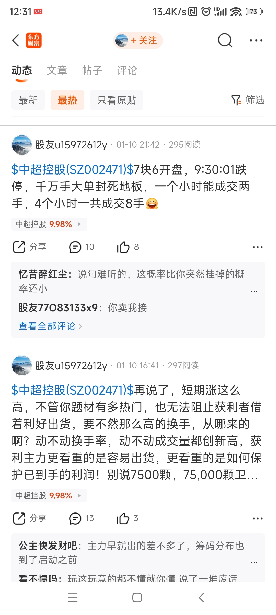 温馨提示: 1.根据《证券法》规定,禁止编造、传播虚假信息或者误导性信息,扰乱证券市场;2.用户在本社区发表的所有资料、言论等仅代表个人观点,与本网站立场无关,不对您构成任何投资建议。用户应基于自己的独立判断,自行决定证券投资并承担相应风险。《东方财富社区管理规定》