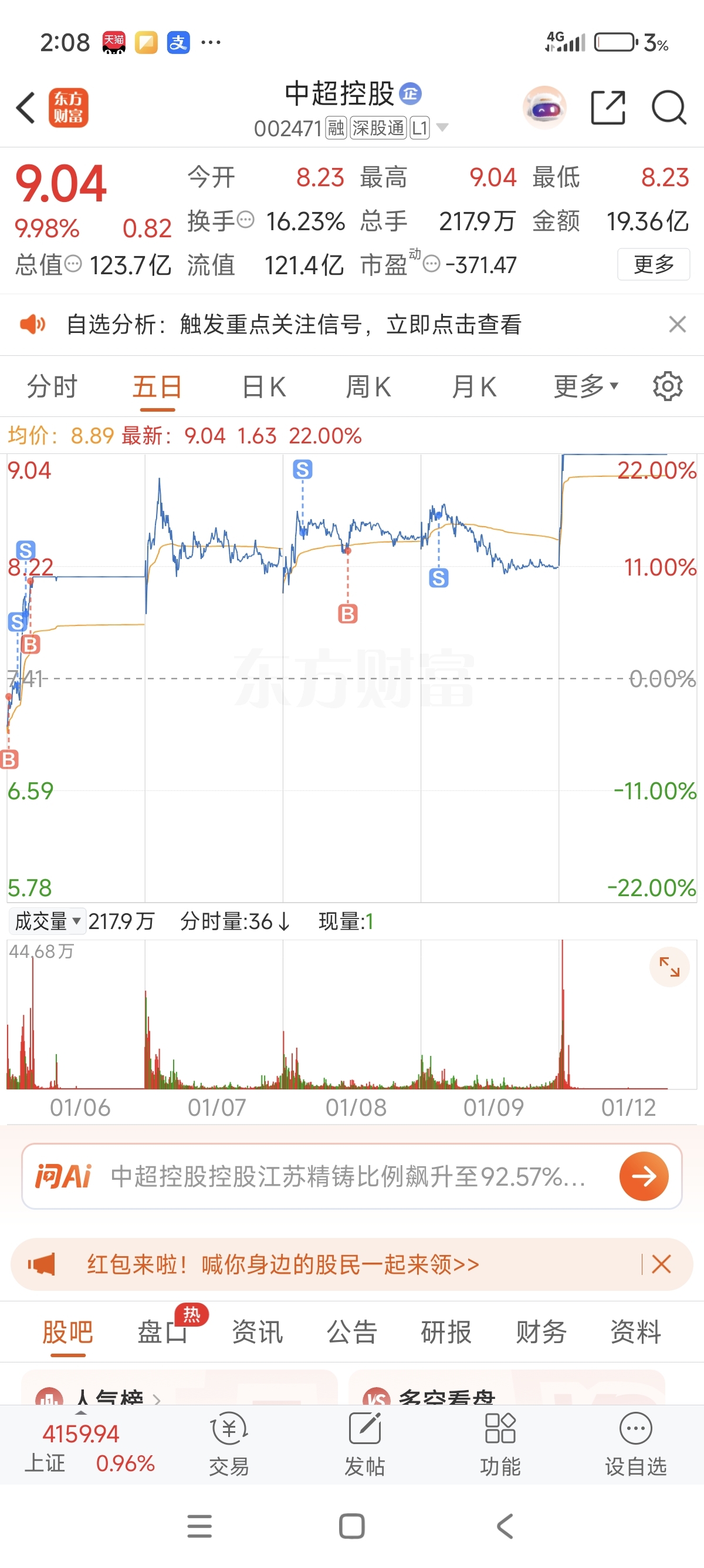 $中超控股(SZ002471)$ 卖飞了卖飞了