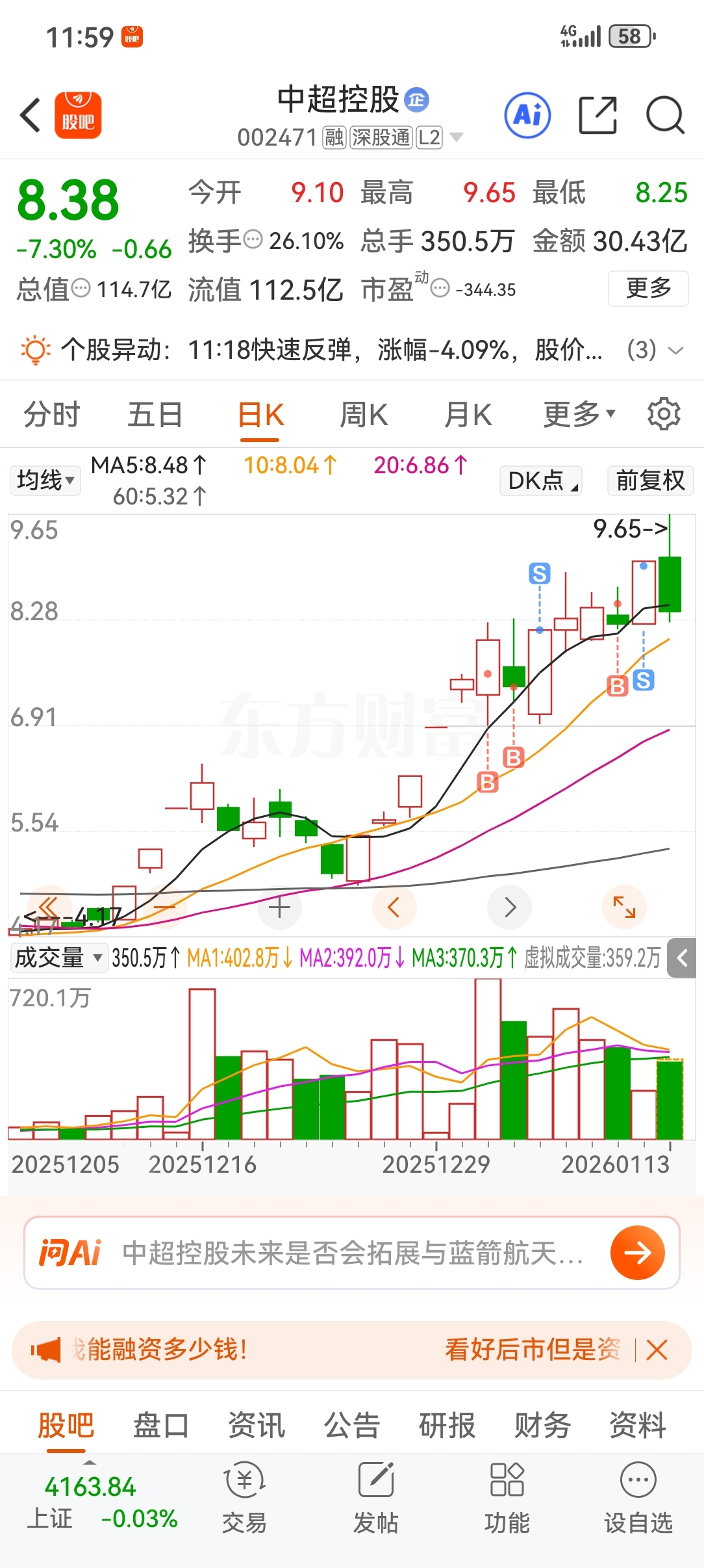 $中超控股(SZ002471)$ 这波逃顶怎么样