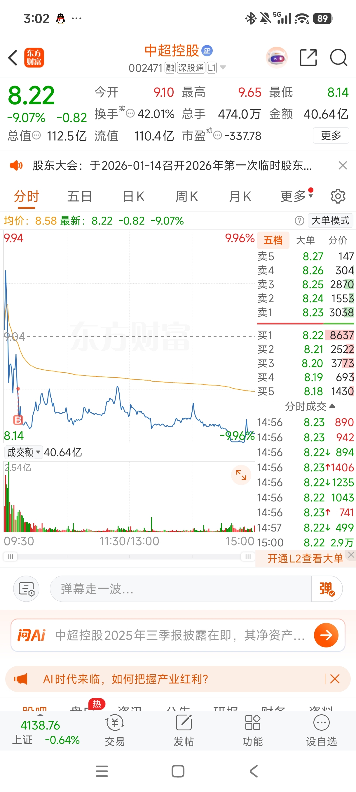 $中超控股(SZ002471)$ 我抄你底,你抄我家