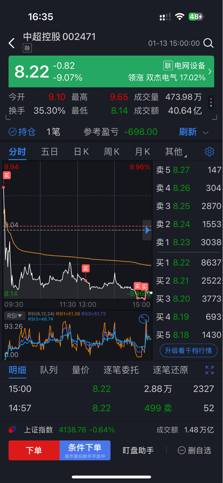 $中超控股(SZ002471)$ 挂山顶了,无能狂怒现在