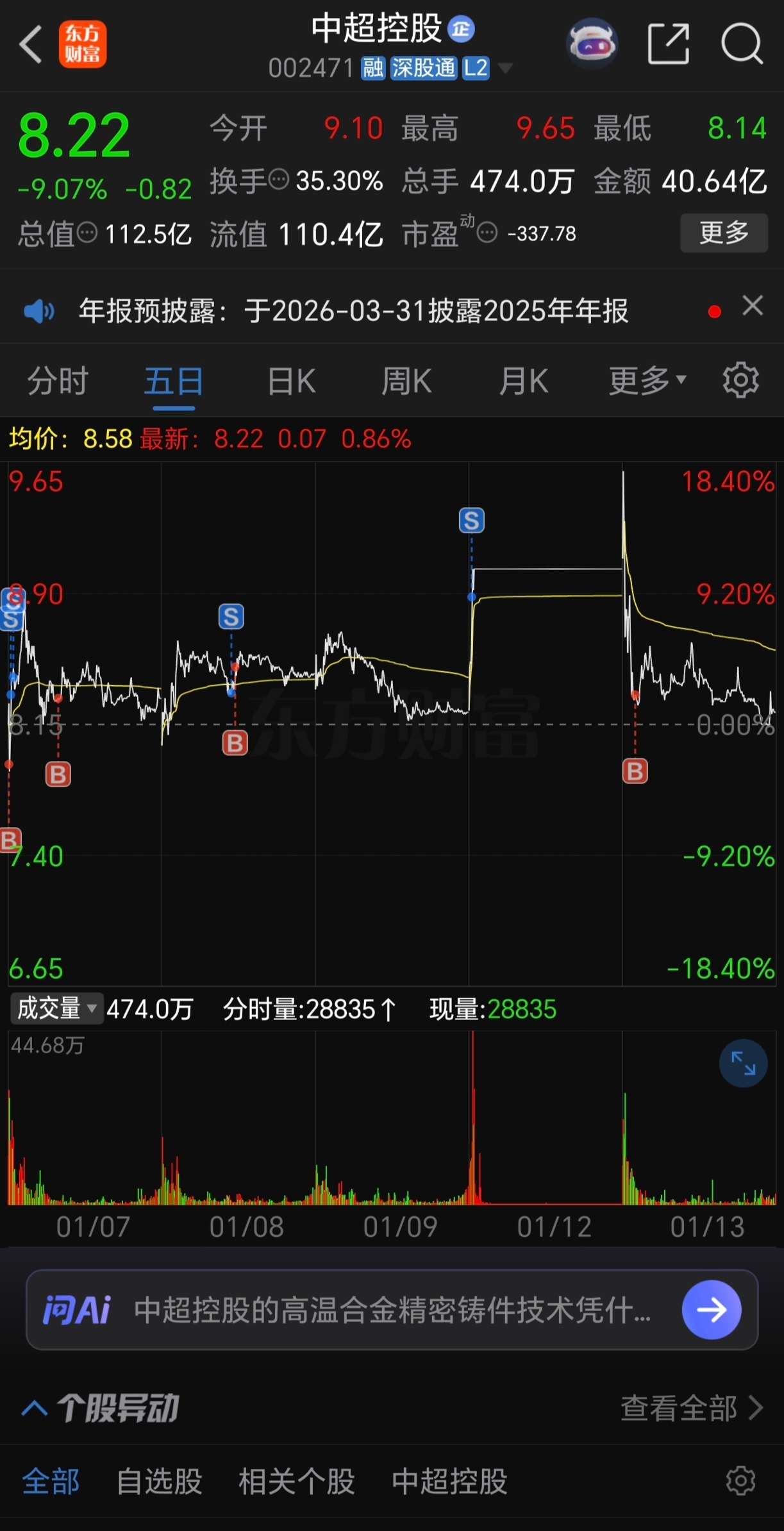 $中超控股(SZ002471)$ 以为卖亏了,主力又给次机会我