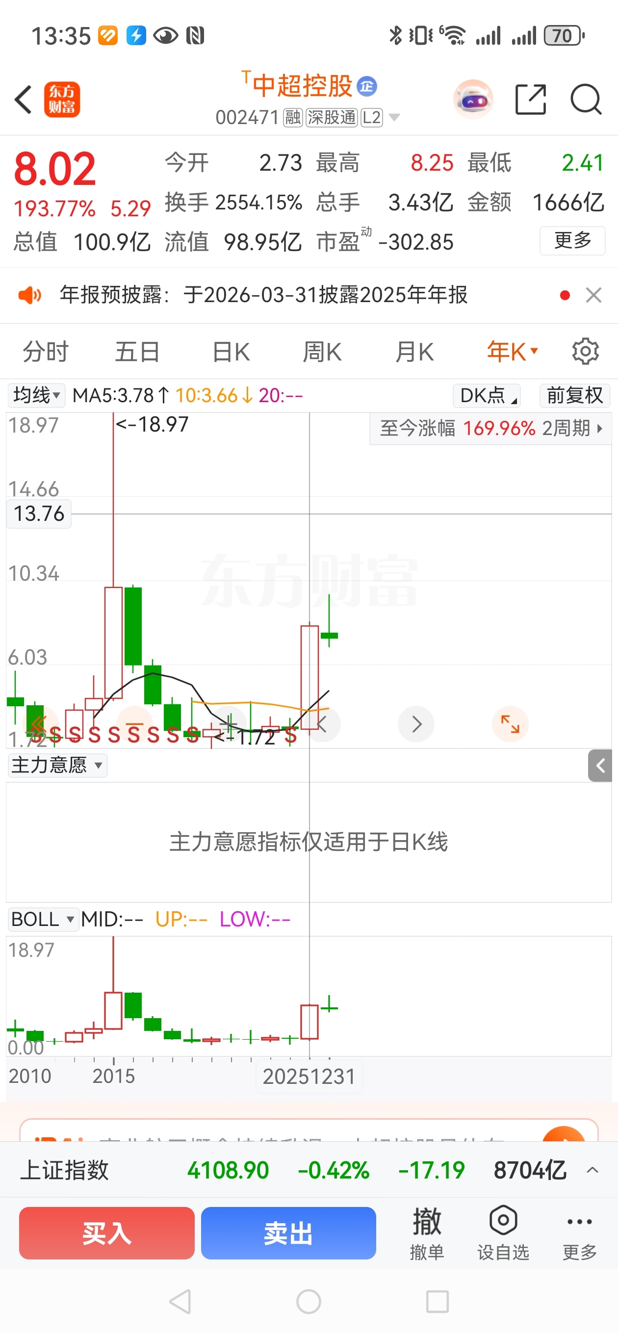 $中超控股(SZ002471)$ 已经涨了193厘米了,是应该调整了,除非是大牛市来了,才能上涨