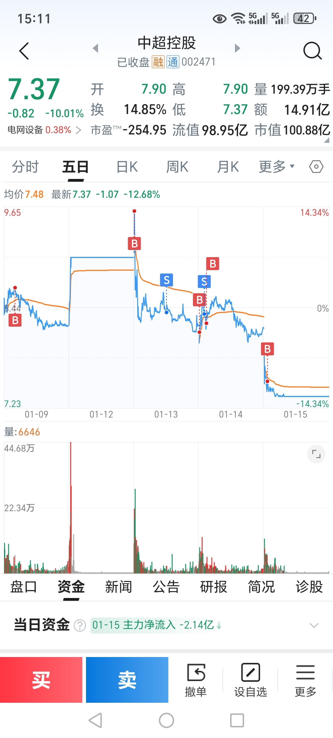 $中超控股(SZ002471)$ 涨停前买的,涨停格局没出,结果一等几个跌停,唉