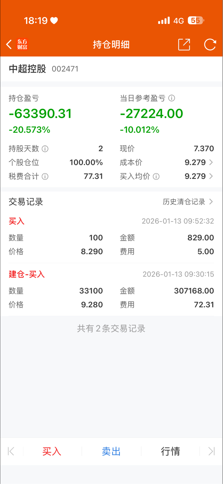 $中超控股(SZ002471)$ 妈的 进来三天 把之前的利润亏80% 明天再跌停亏本金了 我