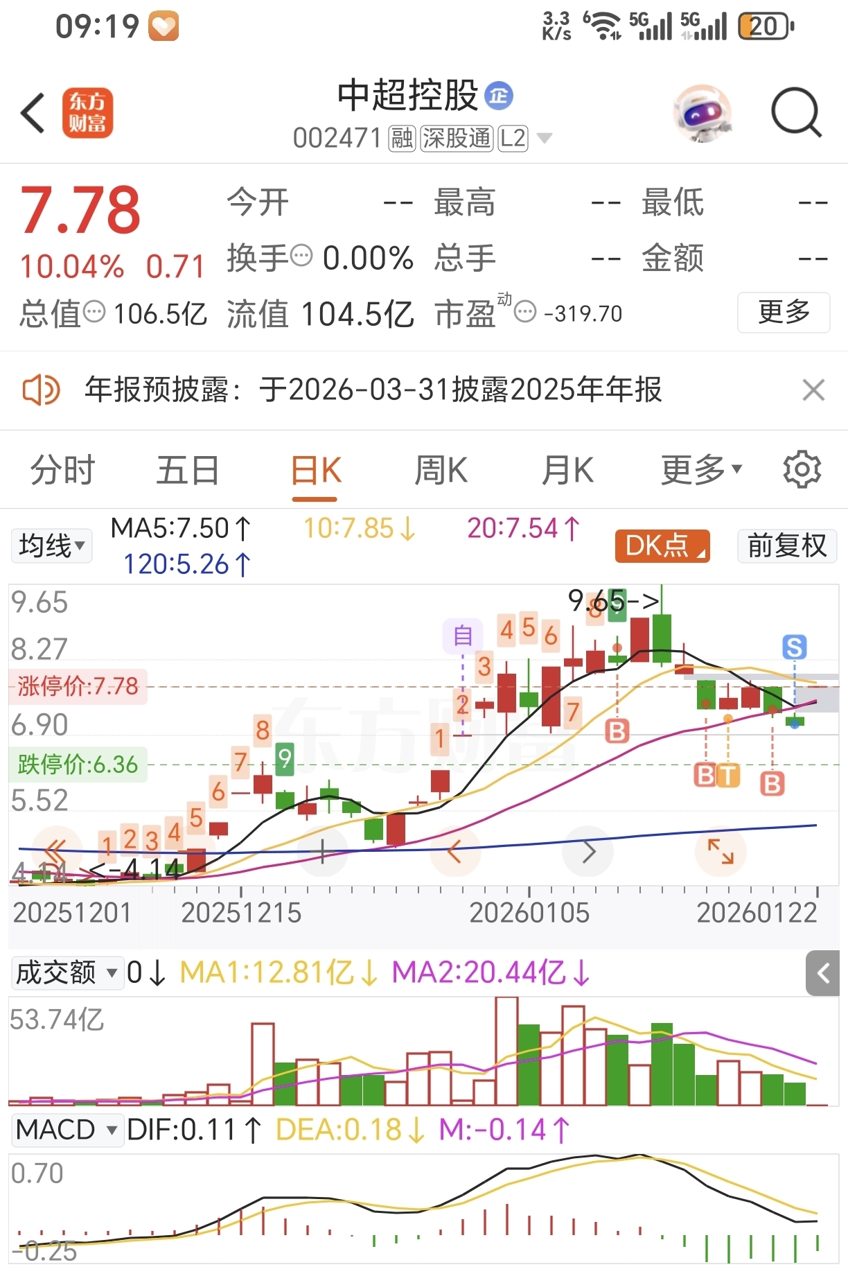 $中超控股(SZ002471)$ 我服了 昨天才清仓亏二十个点 50多万啊