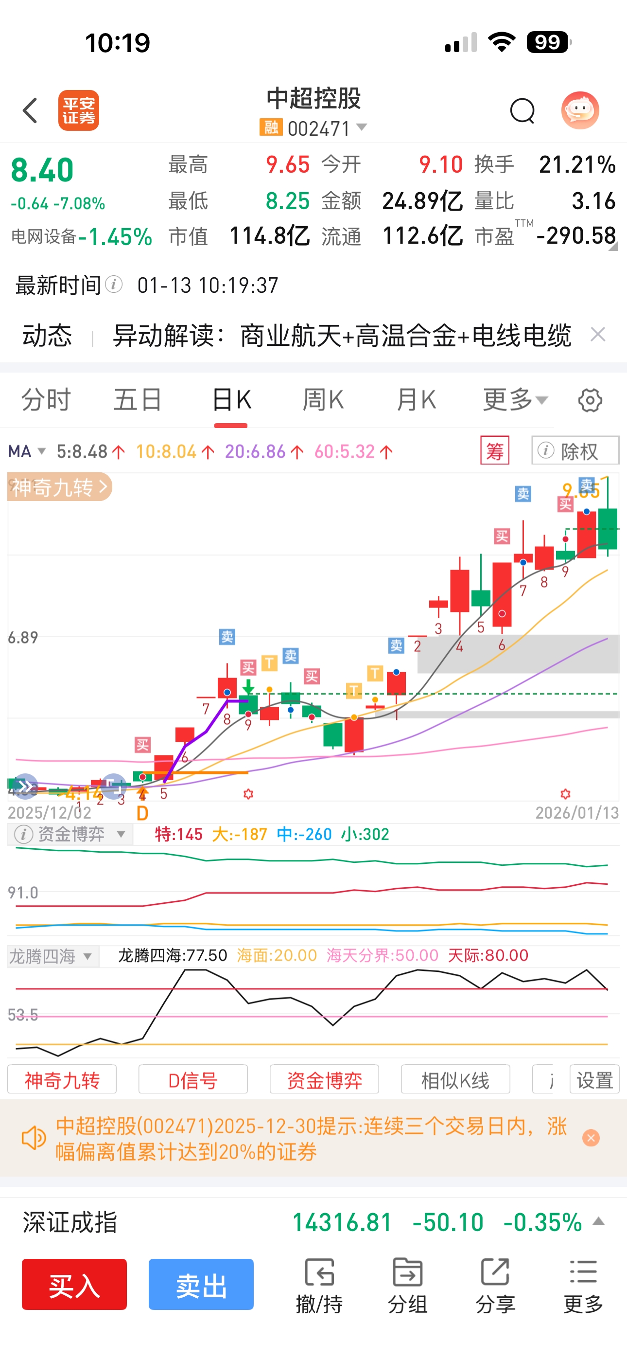 $中超控股(SZ002471)$ 我就说嘛,中超从来没套过我,顶多中间洗盘一天,就像上个月24号抄底进来,25号洗盘,26号涨停