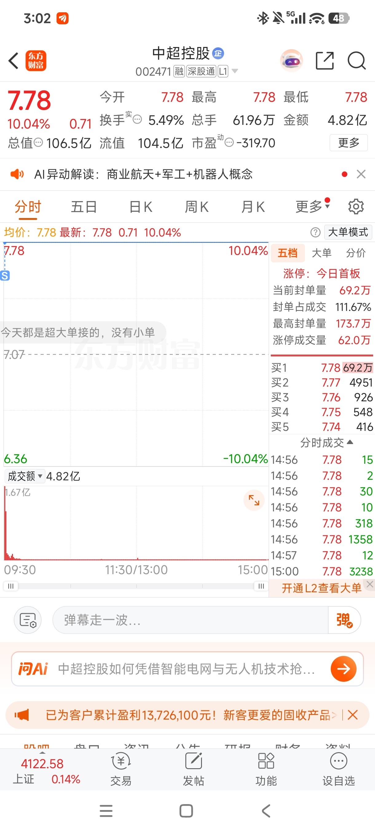 $中超控股(SZ002471)$ 谁接了我的筹码。还给我