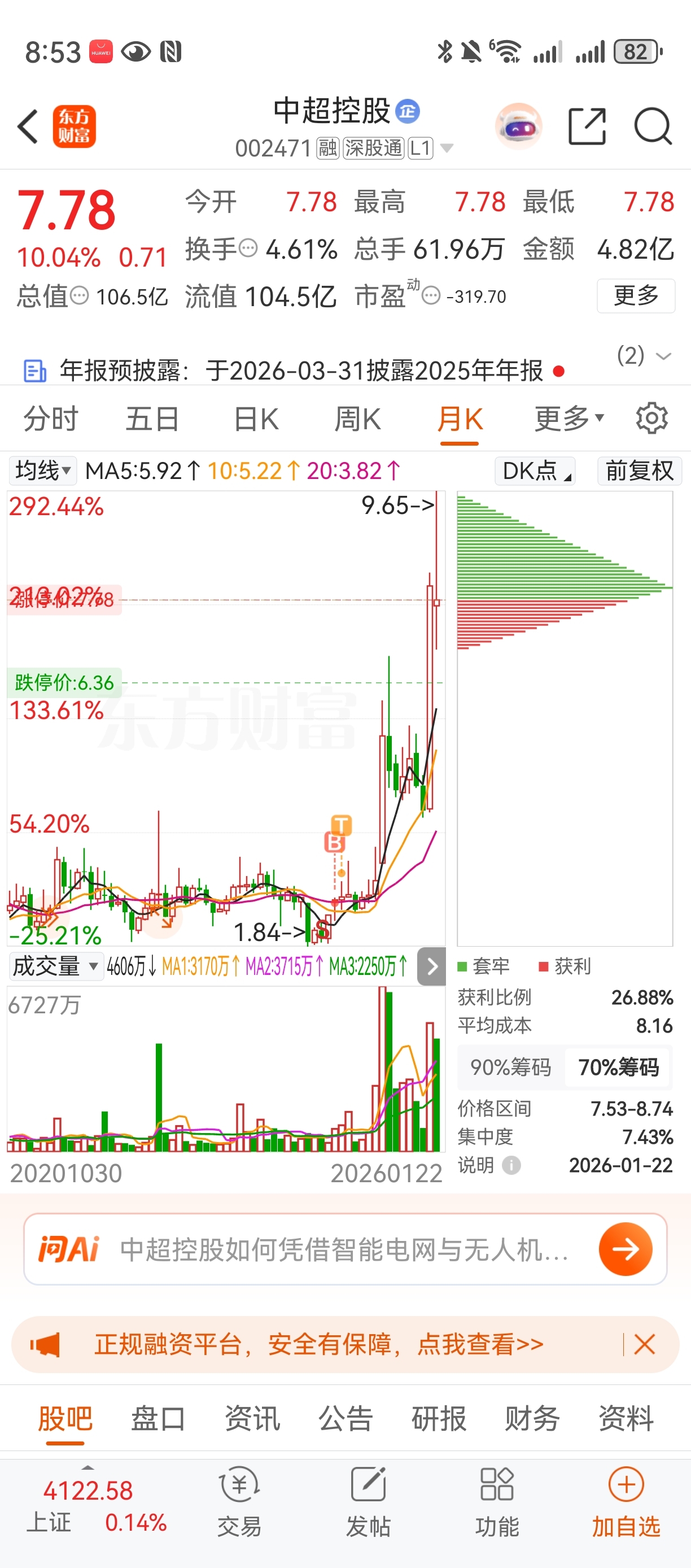 $中超控股(SZ002471)$ 卖飞了嘿嘿