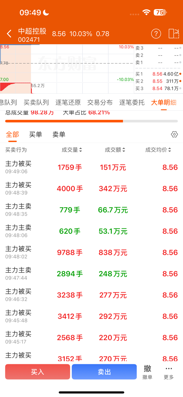 $中超控股(SZ002471)$ 主力 在吸筹?
