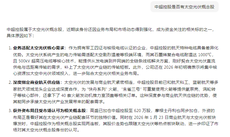 中超控股属于太空光伏概念股,哪位领导加上这个概念啊