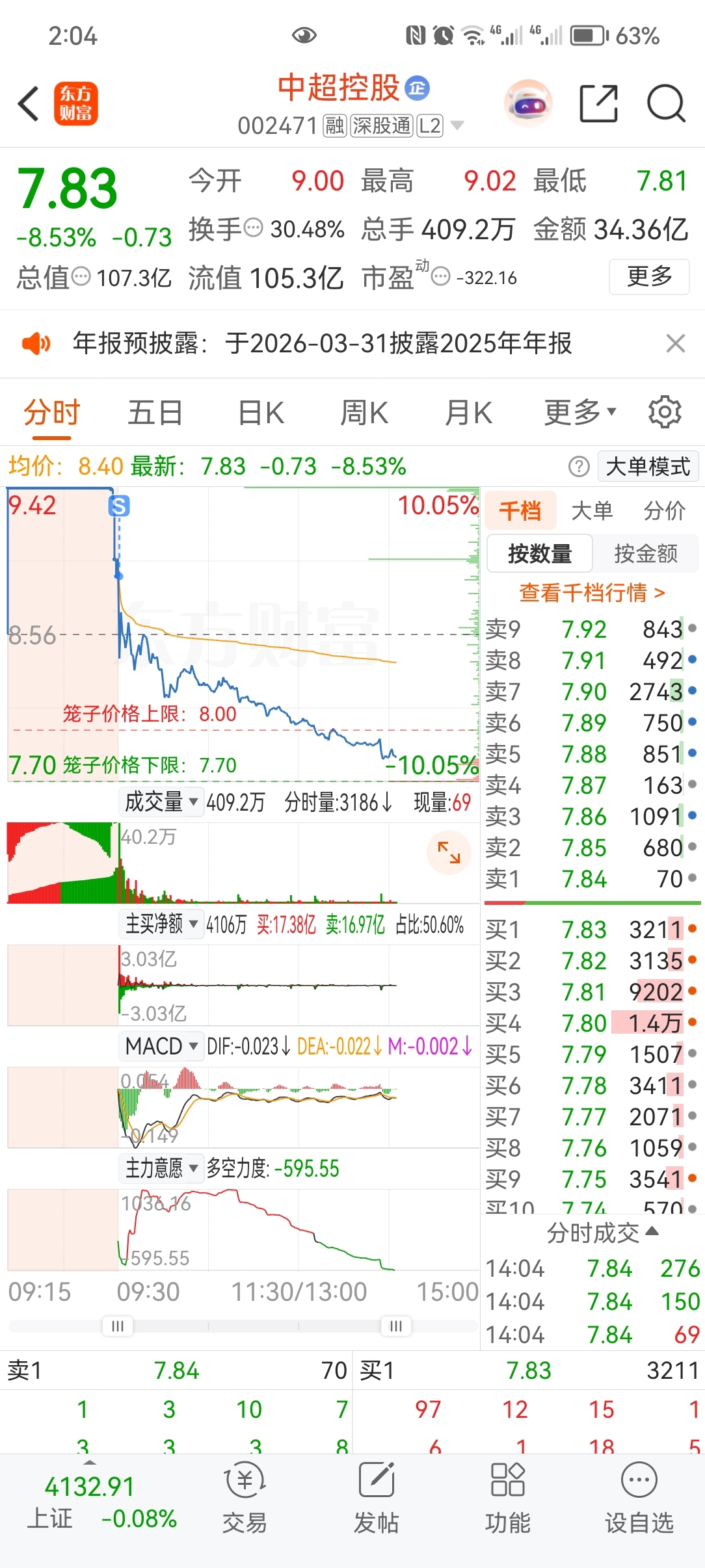 $中超控股(SZ002471)$ 设置了条件单躲过一劫