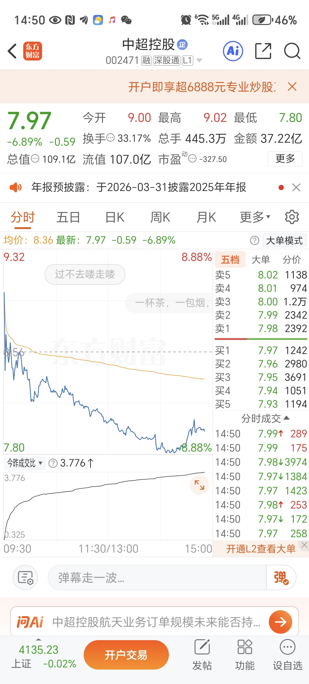 $中超控股(SZ002471)$ 其实这种最好判断了,该强不强,明天一个大阴线,记住了,明天只要割肉,再也不要回头,这种恶心的东西,哼!