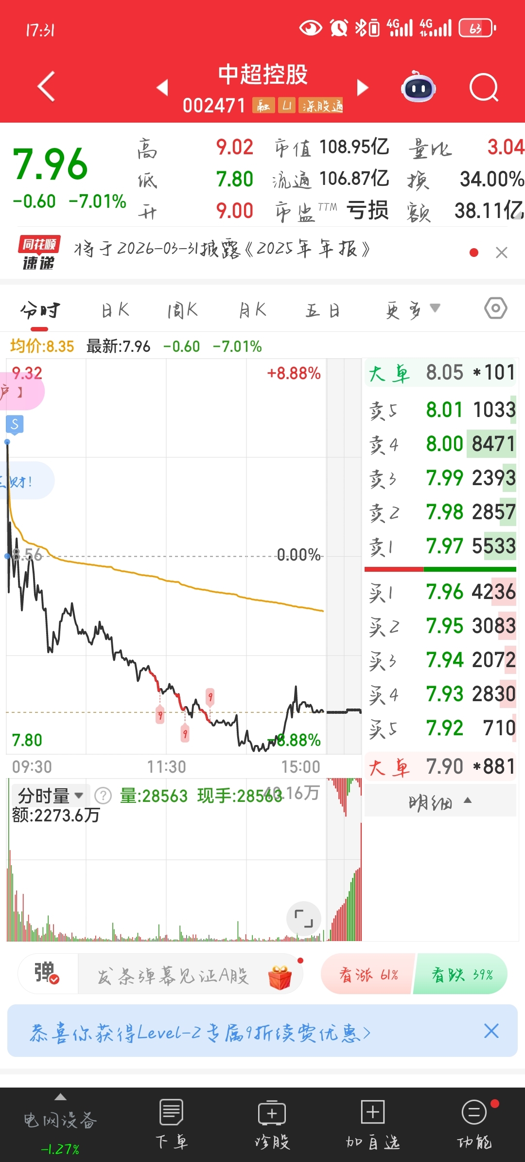 $中超控股(SZ002471)$ 还好还好