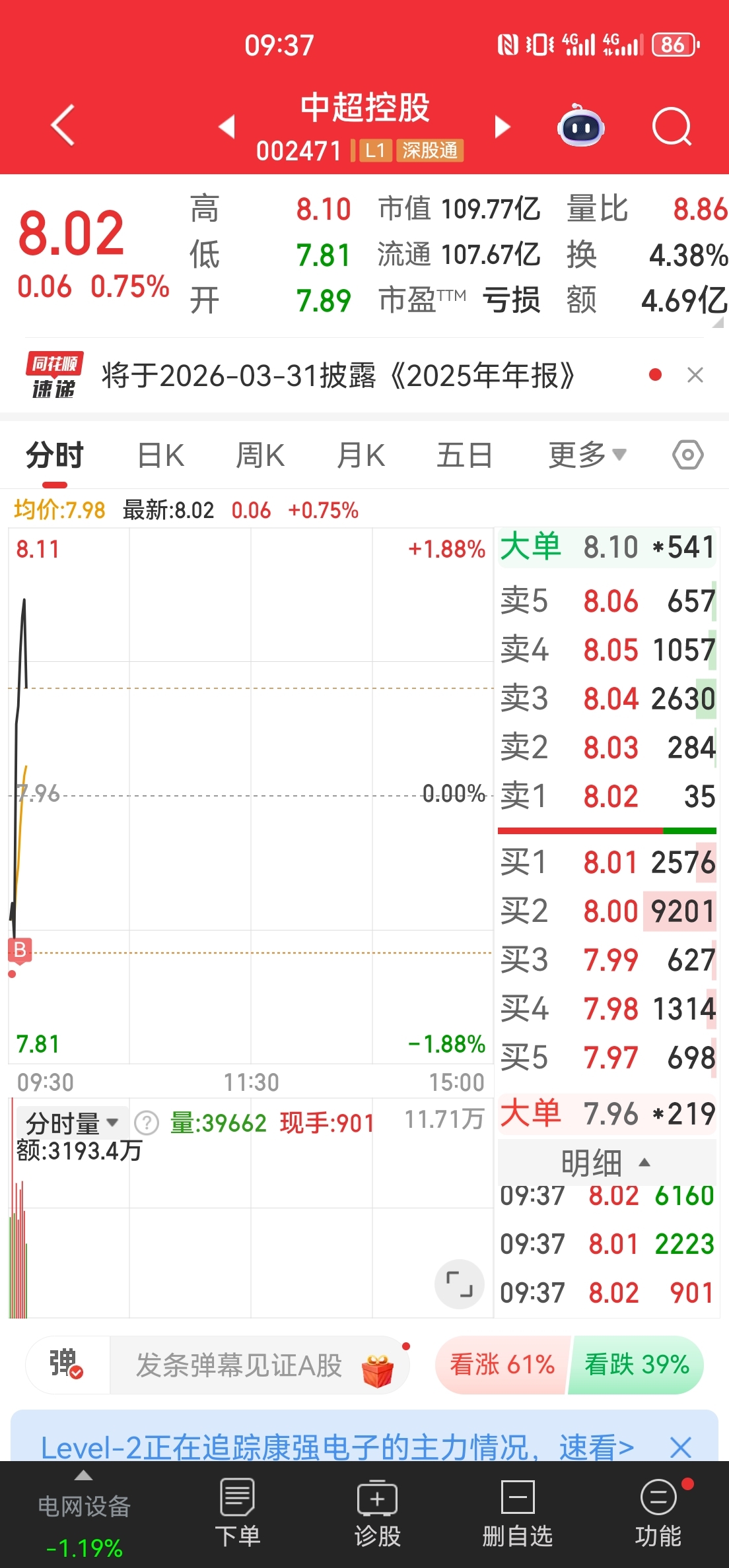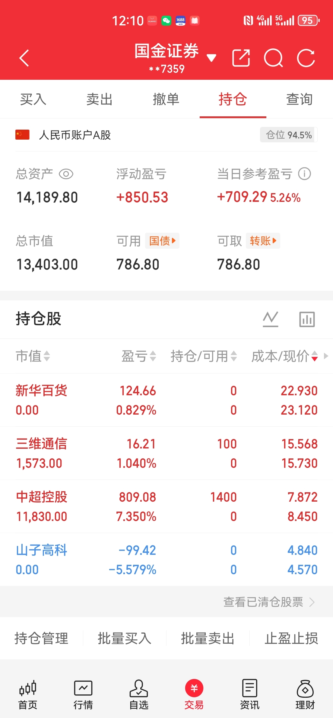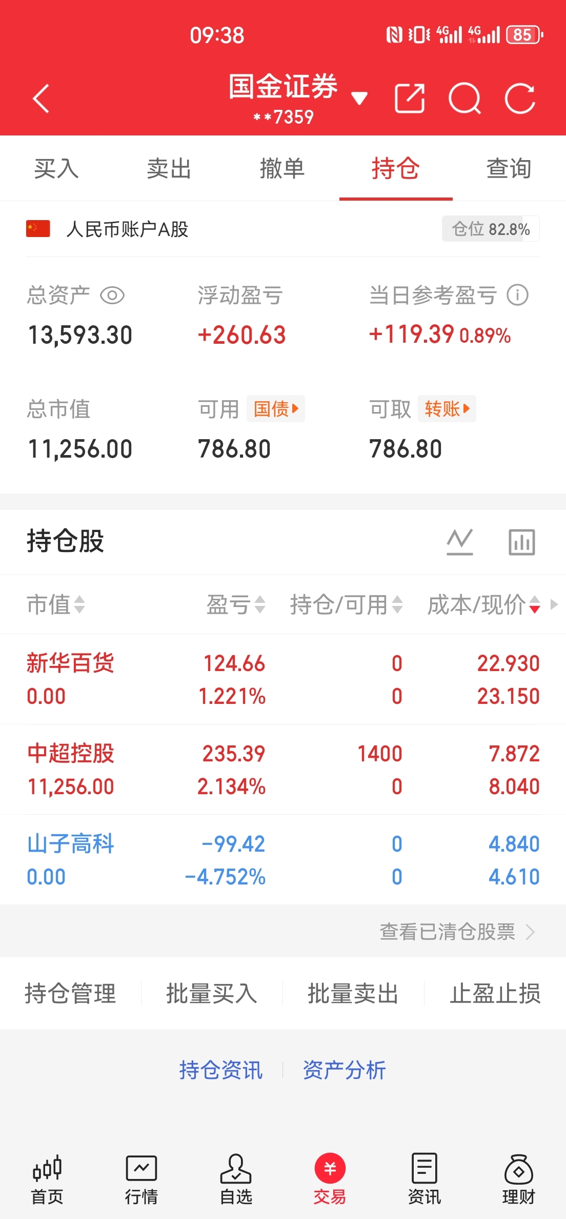 $中超控股(SZ002471)$ 一万到一百万第69天,新华百货开盘走了,-1买了中超