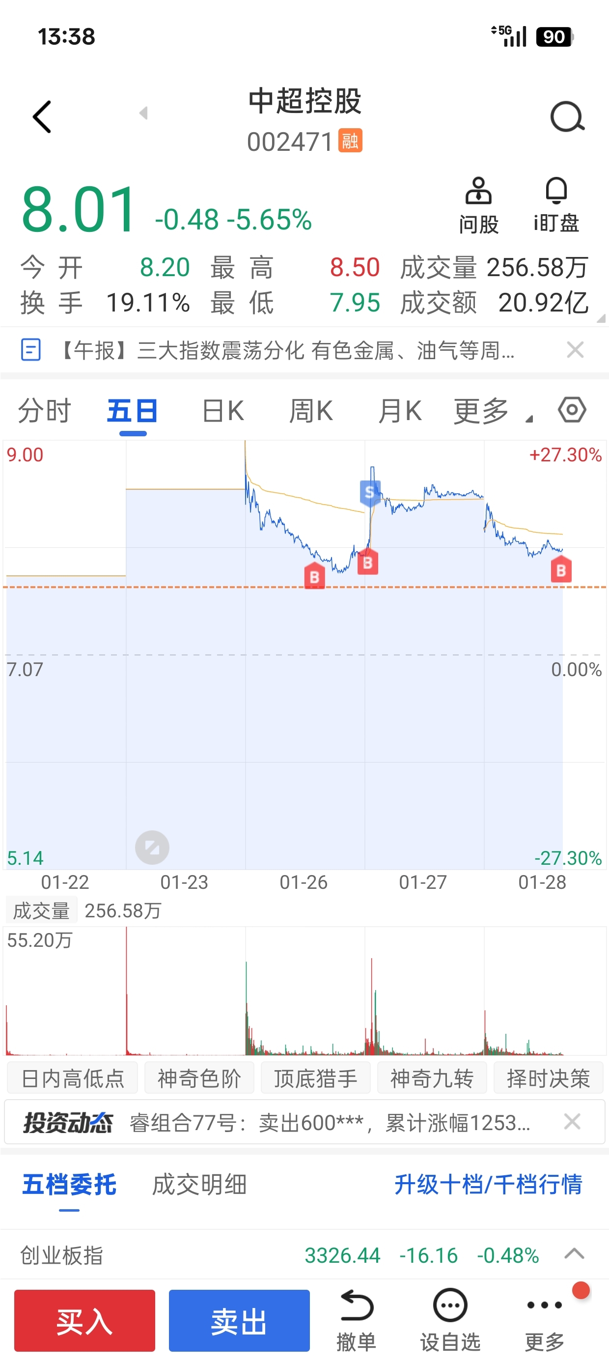 $中超控股(SZ002471)$ 加仓加仓,等你企稳准备破新高,市场资金不过来就只有提前埋伏一波,现在追热点跑得慢的只有被套山顶的机会大于风险