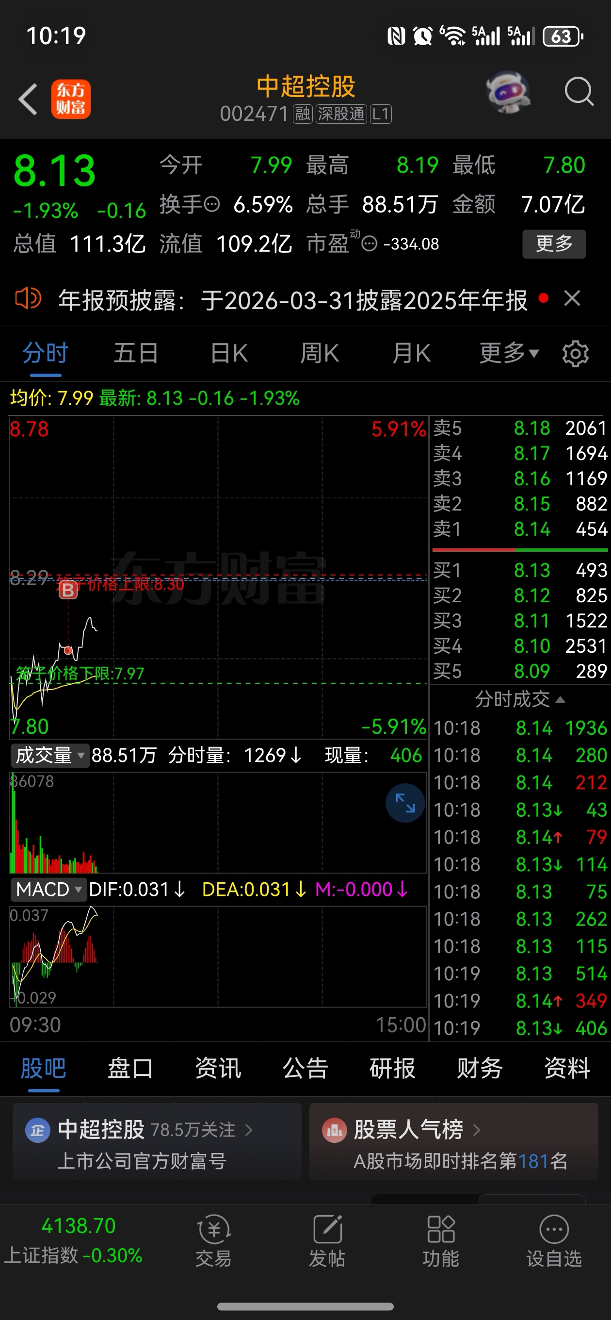 $中超控股(SZ002471)$ 今天又补了些仓位,看好后市的!