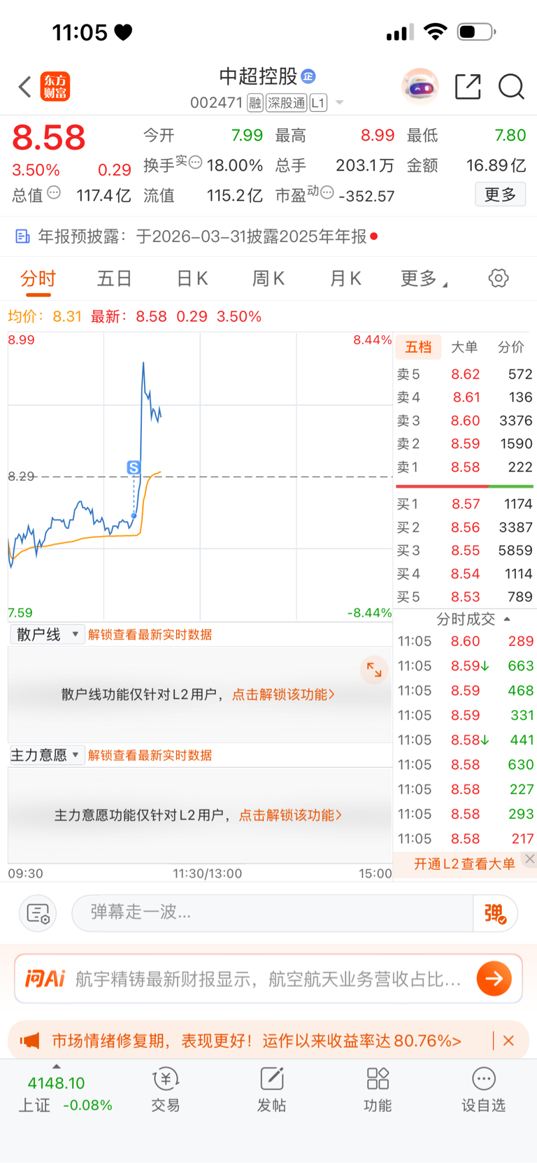 $中超控股(SZ002471)$ 郁闷,卖飞了……