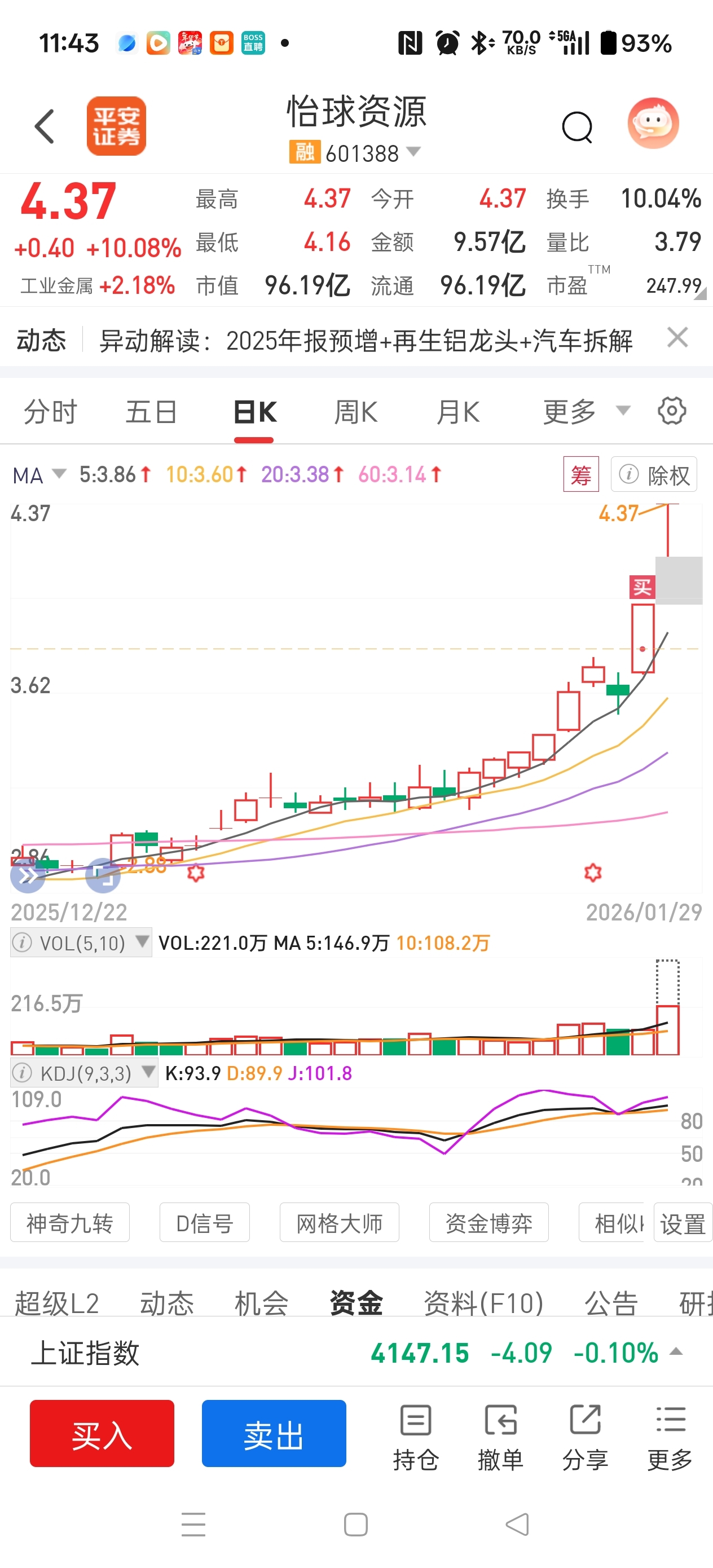 $中超控股(SZ002471)$ 还好昨天割了中超进怡球,在中超真窝火,卄蛋走法~怡球主升浪中,业绩预增10倍,6板起步~$怡球资源(SH601388)$