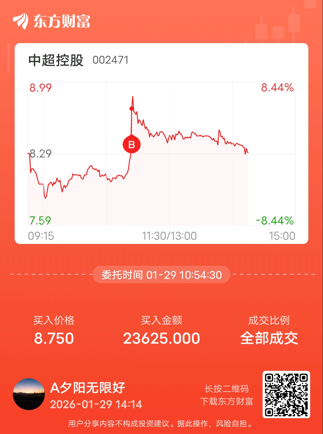 温馨提示: 1.根据《证券法》规定,禁止编造、传播虚假信息或者误导性信息,扰乱证券市场;2.用户在本社区发表的所有资料、言论等仅代表个人观点,与本网站立场无关,不对您构成任何投资建议。用户应基于自己的独立判断,自行决定证券投资并承担相应风险。《东方财富社区管理规定》