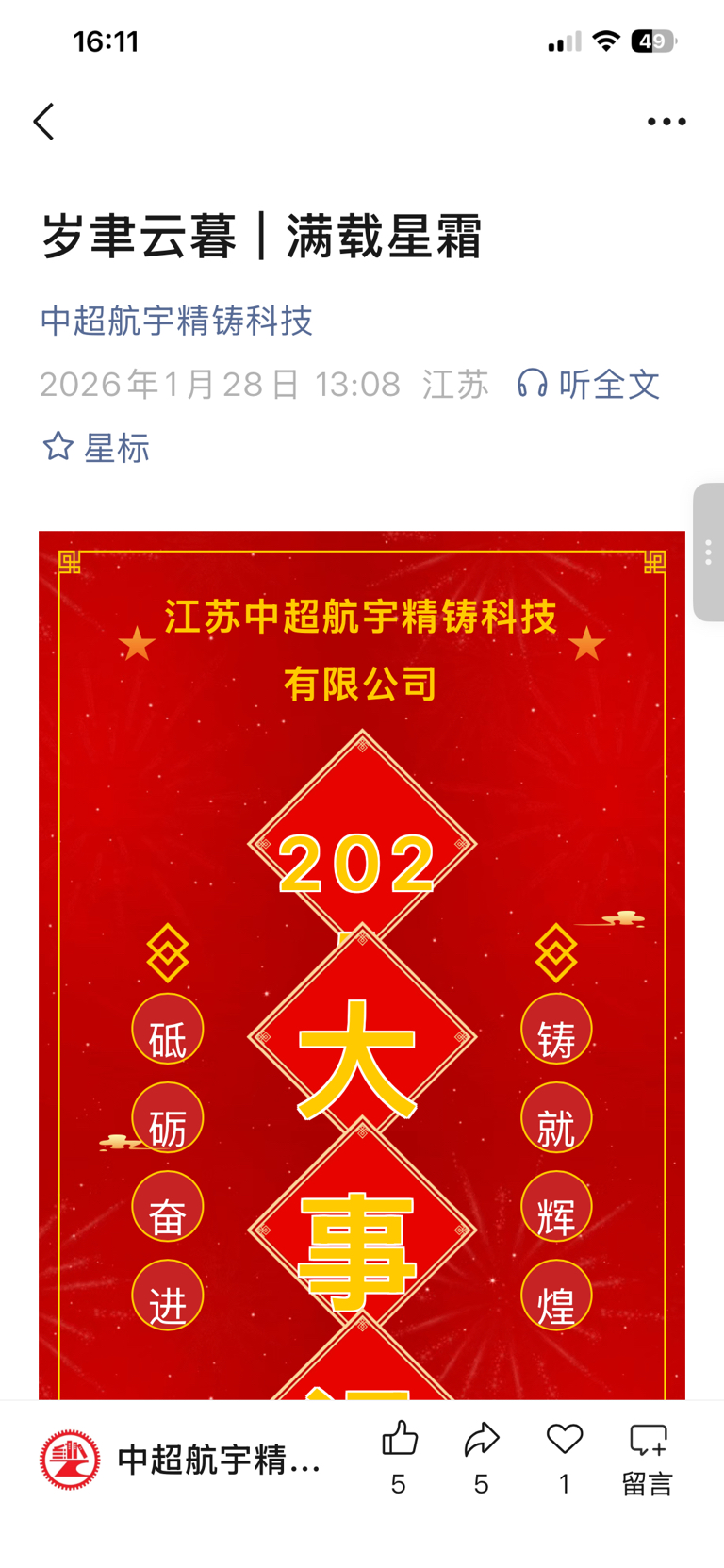 $中超控股(SZ002471)$ 建议持股不坚定的去航宇官微看看这篇文章,现在唱空的都是想要你筹码的。之前出个40套订单结果来两个一字,中超行情才刚哈刚开始,横盘了十年,航宇是中超企业转型走出第二曲线的关键一步,又是和院士一起合作的。商业航天未来是仅次于ai,机器人的热门赛道。2026年中超股价到15左右非常合理!