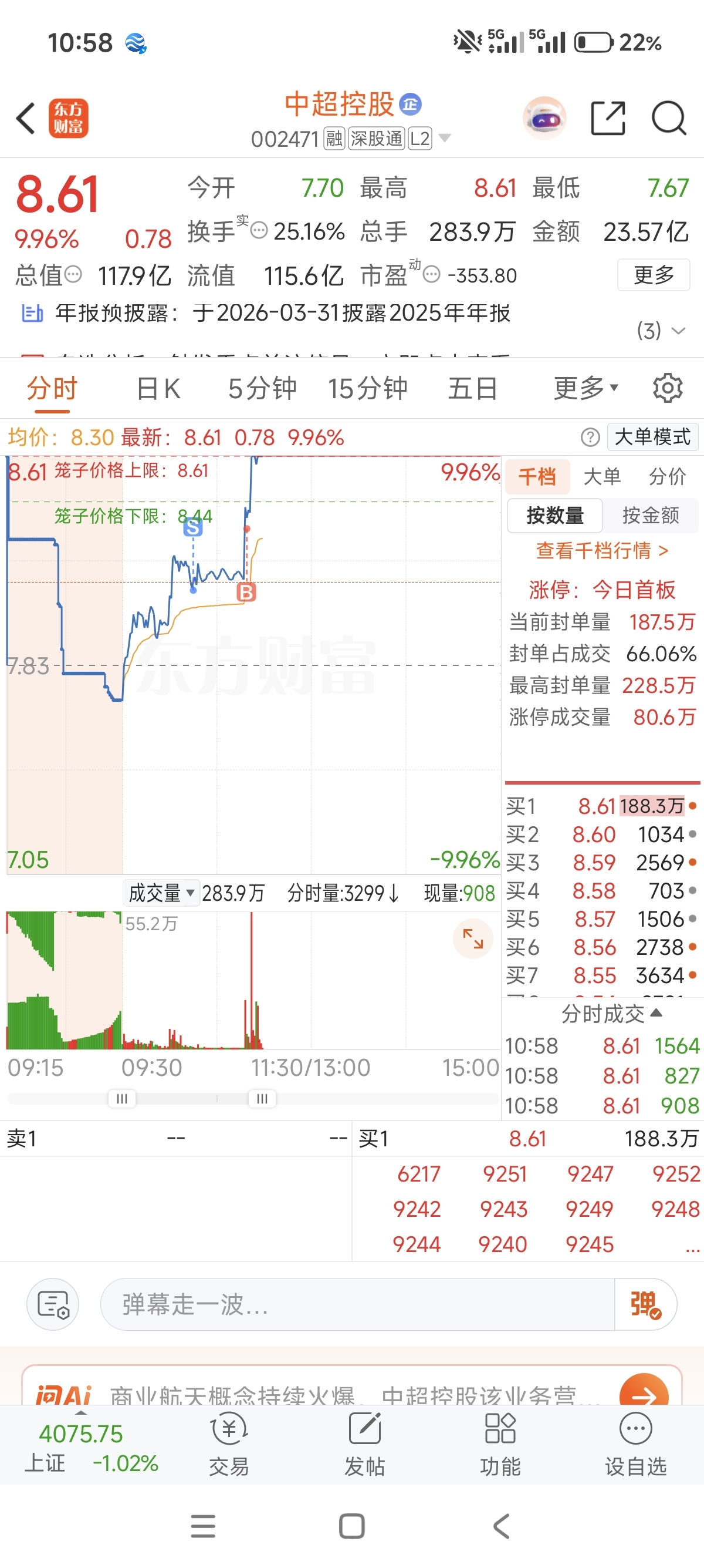 $中超控股(SZ002471)$ 直接sb