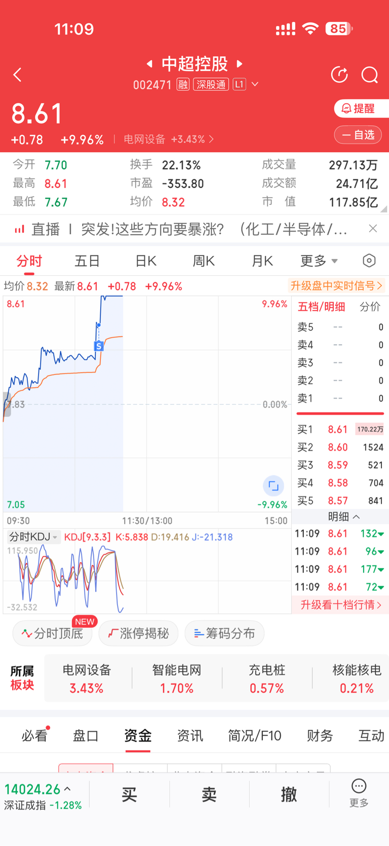 $中超控股(SZ002471)$ 早卖2分钟,少了三千多