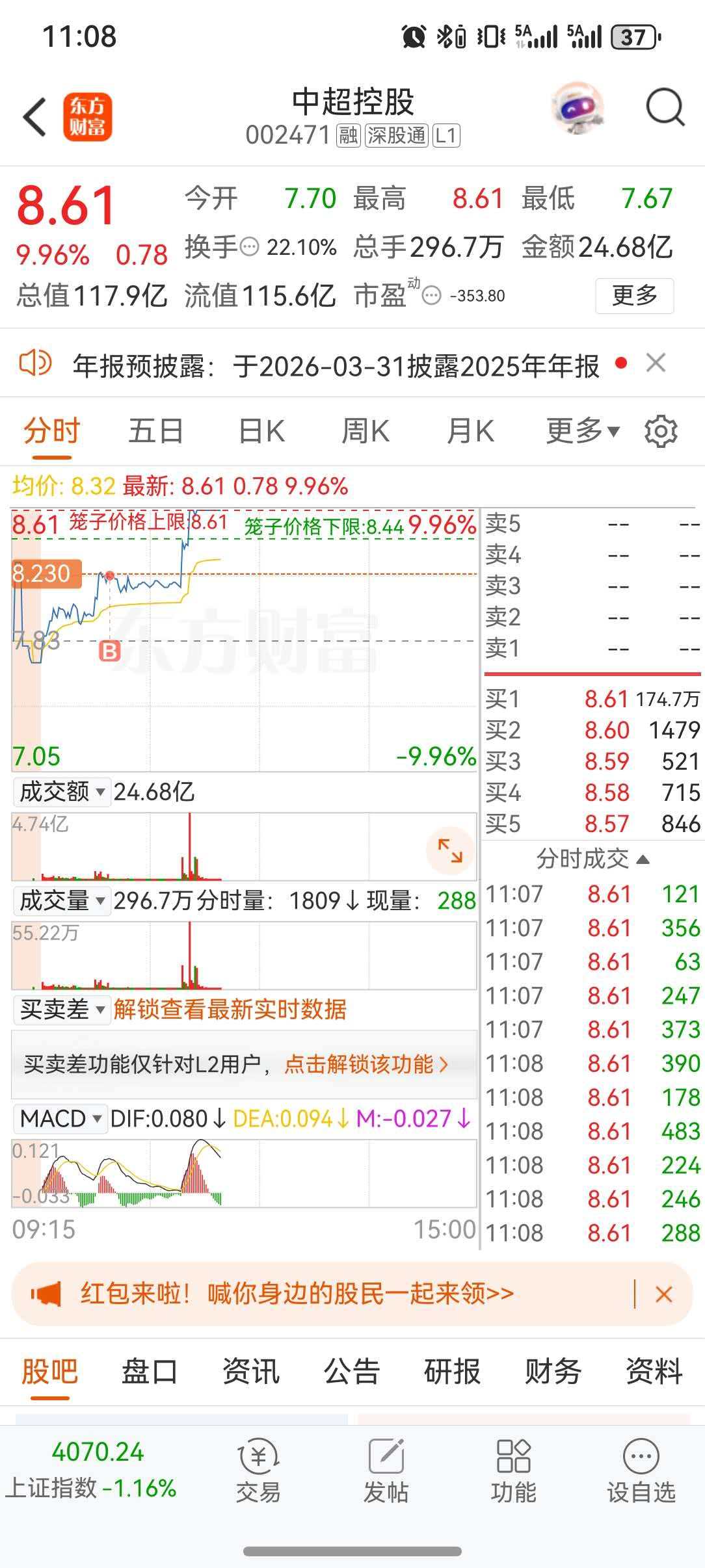 上次吃了两个涨停板,这次我又意外进来了。