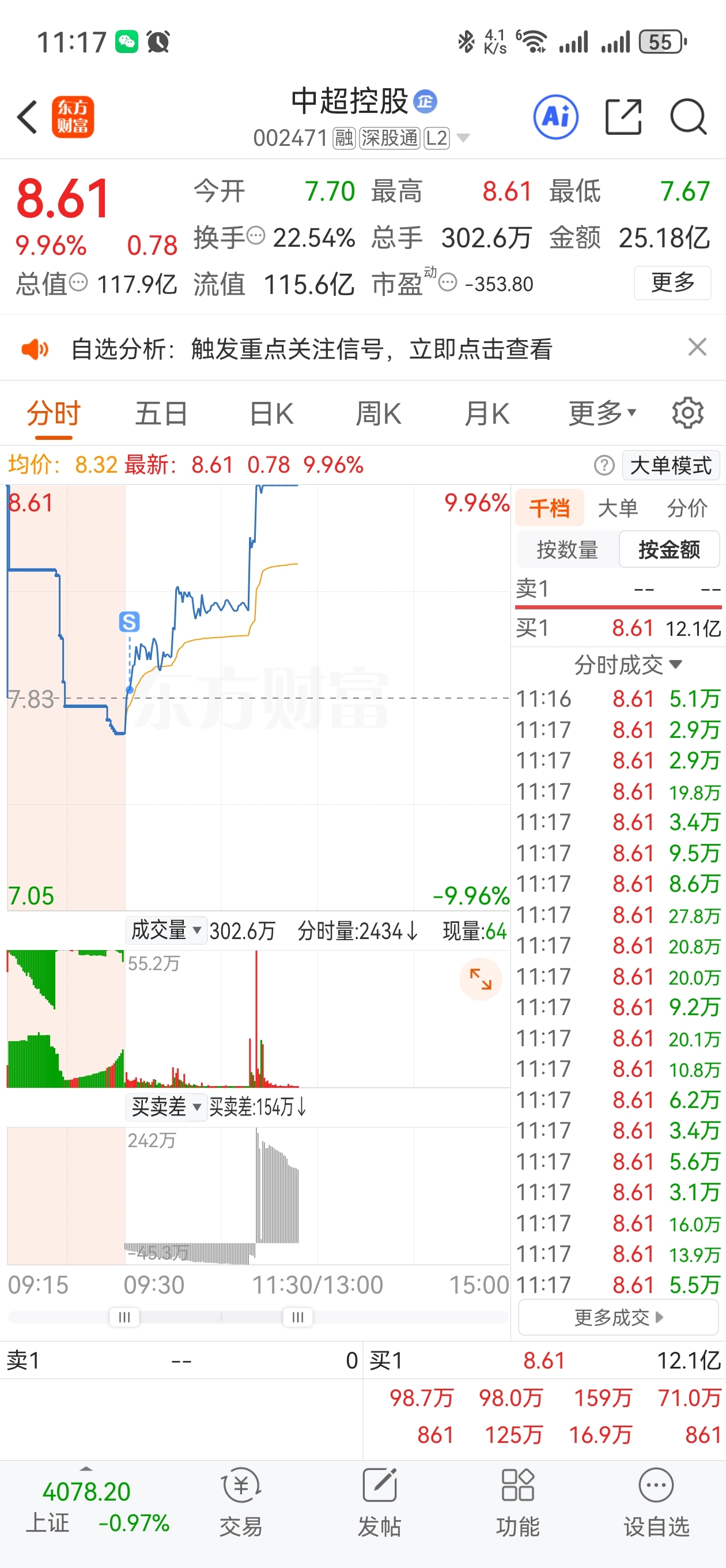 $中超控股(SZ002471)$ 各位英雄快给我骂死,卖了这个买了高标