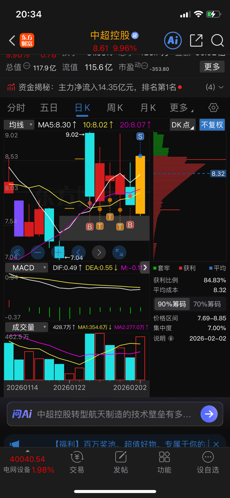 $中超控股(SZ002471)$ 出了半仓对不对哈,