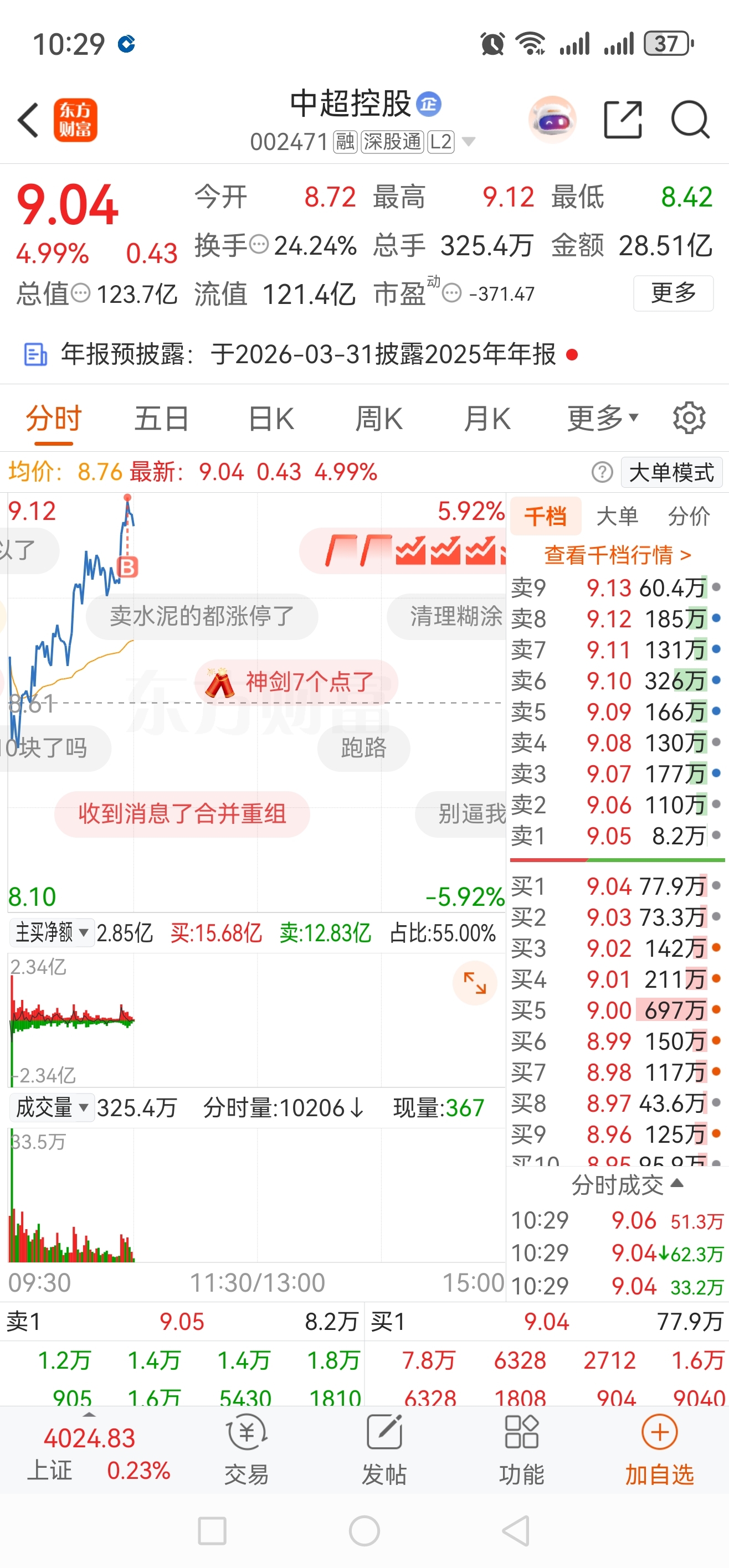 $中超控股(SZ002471)$ 你说什么,风大听不见