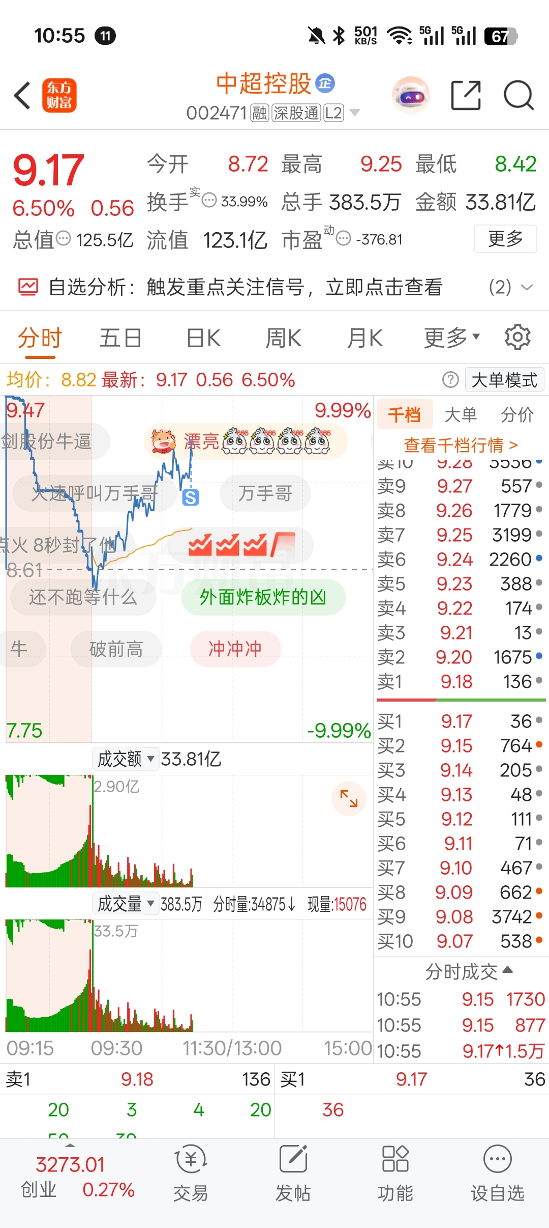 $中超控股(SZ002471)$ 24撤退,留下好运,我是有点怕明天了