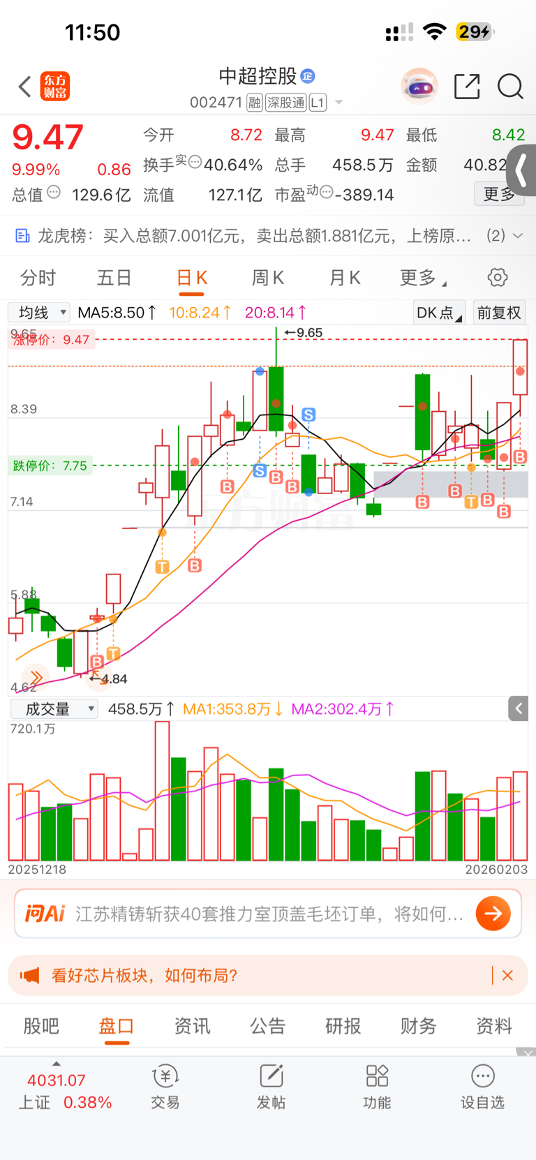 $中超控股(SZ002471)$ 过了9块就加仓。不为别的,信超哥