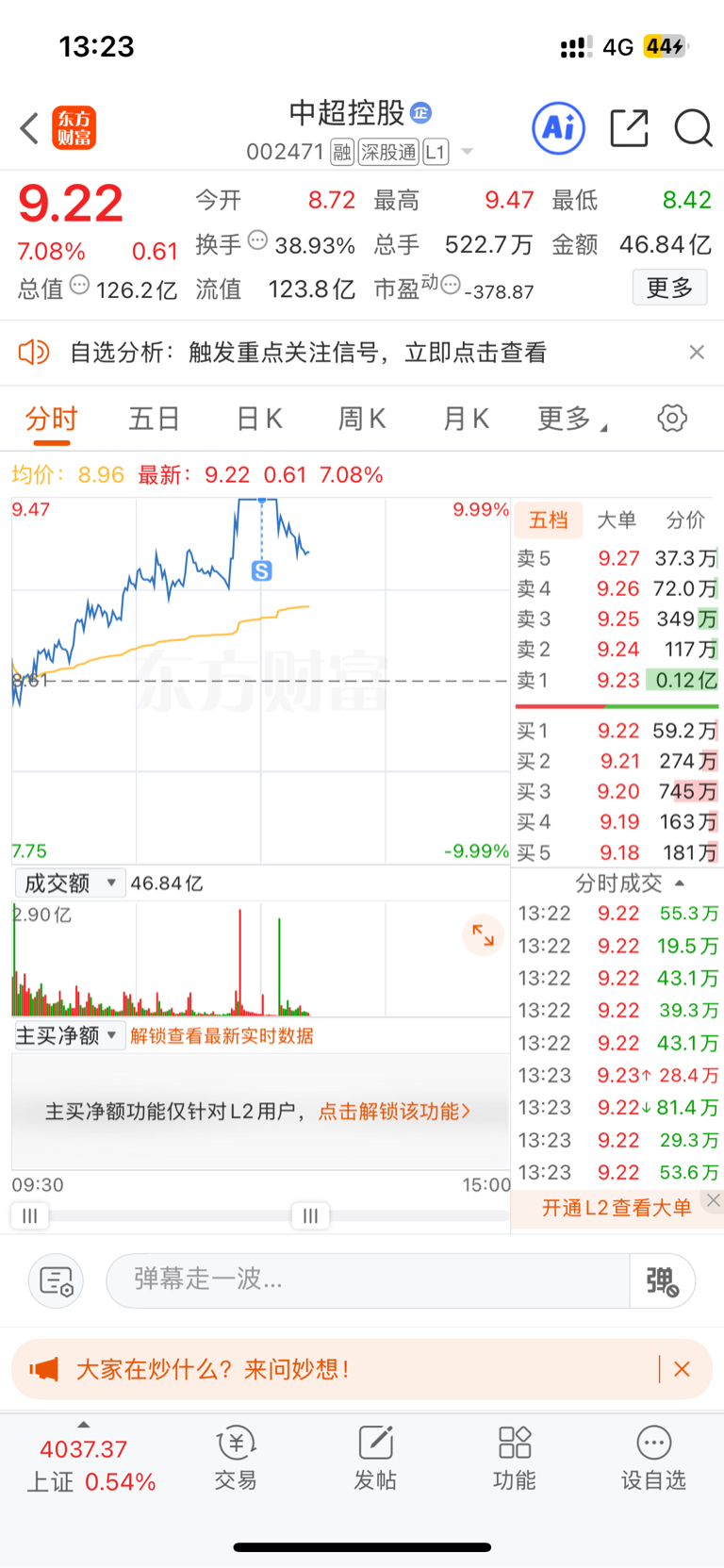 $中超控股(SZ002471)$ 把我洗跑了