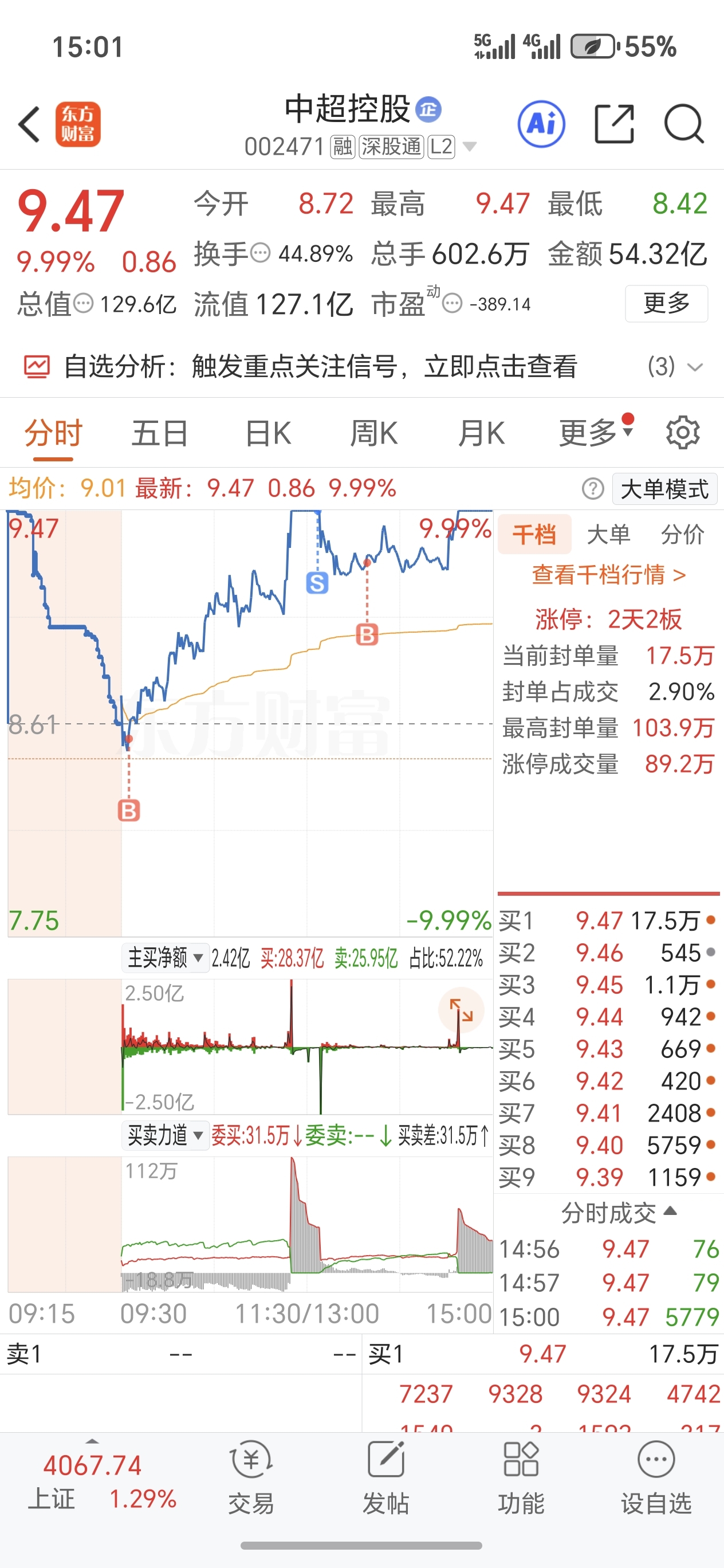 $中超控股(SZ002471)$ 记录一下