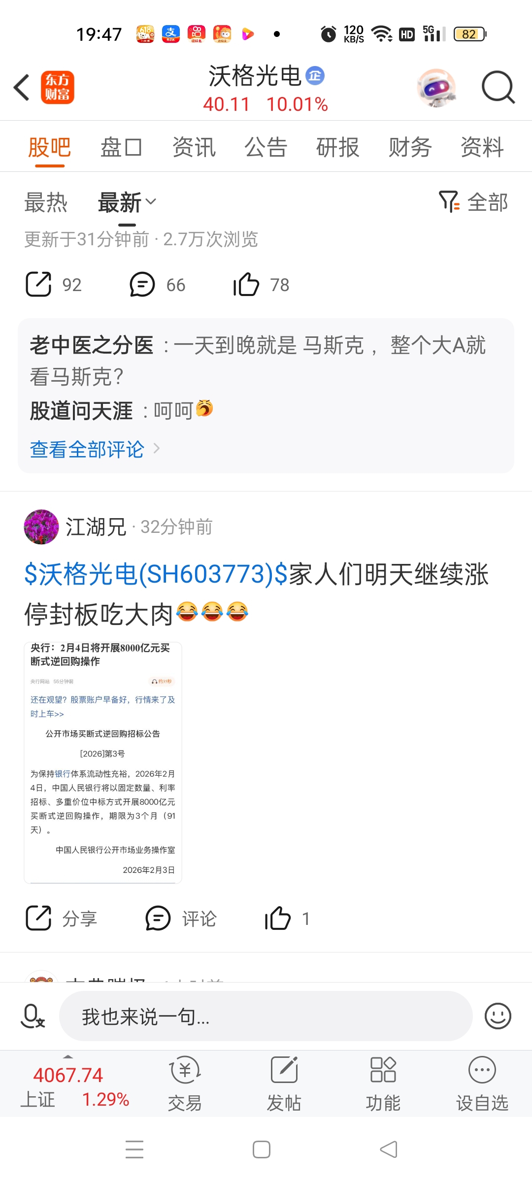 温馨提示: 1.根据《证券法》规定,禁止编造、传播虚假信息或者误导性信息,扰乱证券市场;2.用户在本社区发表的所有资料、言论等仅代表个人观点,与本网站立场无关,不对您构成任何投资建议。用户应基于自己的独立判断,自行决定证券投资并承担相应风险。《东方财富社区管理规定》