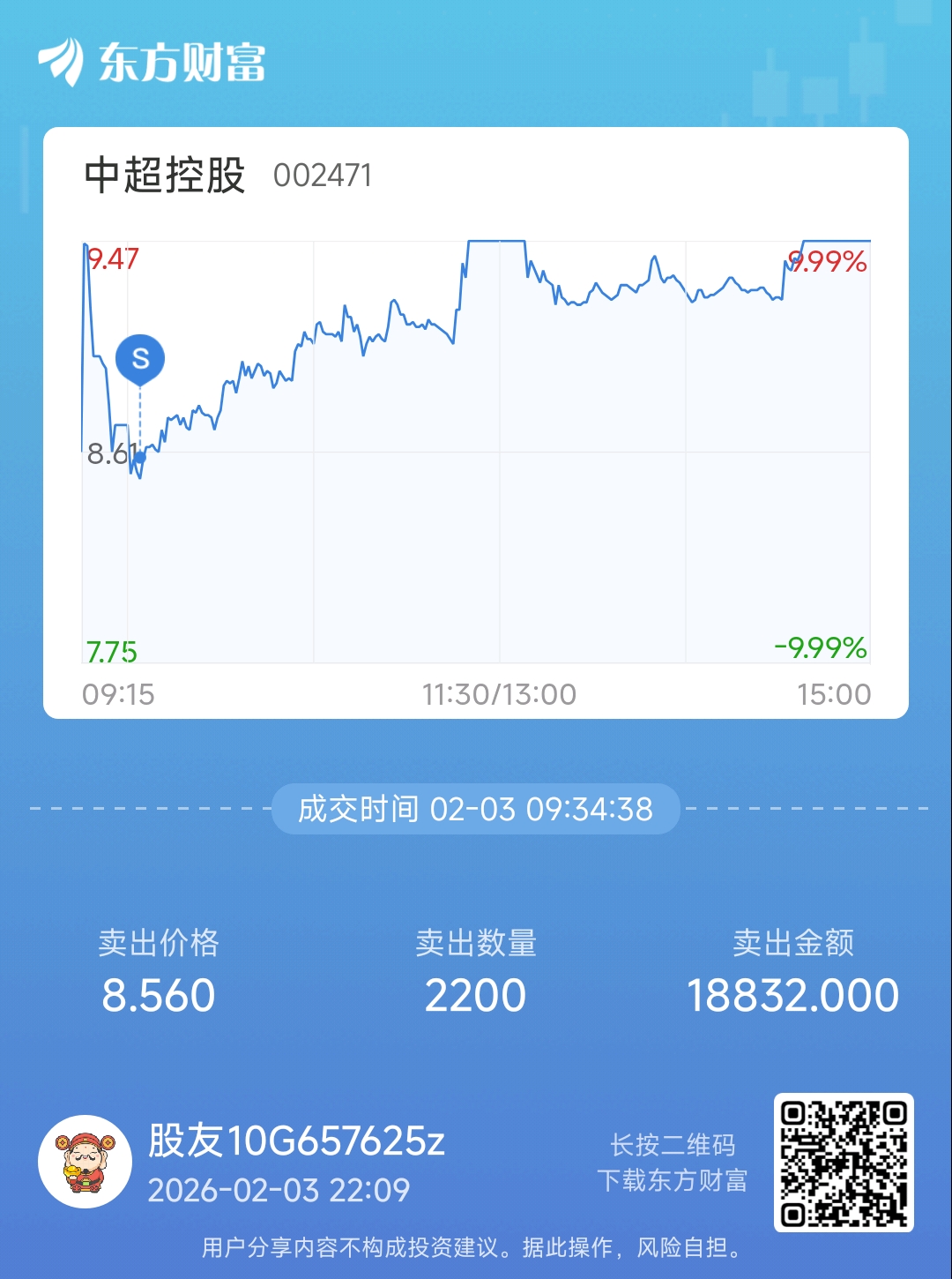 温馨提示: 1.根据《证券法》规定,禁止编造、传播虚假信息或者误导性信息,扰乱证券市场;2.用户在本社区发表的所有资料、言论等仅代表个人观点,与本网站立场无关,不对您构成任何投资建议。用户应基于自己的独立判断,自行决定证券投资并承担相应风险。《东方财富社区管理规定》