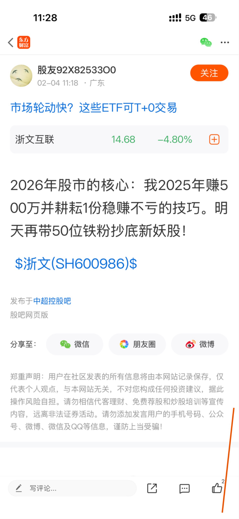 温馨提示: 1.根据《证券法》规定,禁止编造、传播虚假信息或者误导性信息,扰乱证券市场;2.用户在本社区发表的所有资料、言论等仅代表个人观点,与本网站立场无关,不对您构成任何投资建议。用户应基于自己的独立判断,自行决定证券投资并承担相应风险。《东方财富社区管理规定》