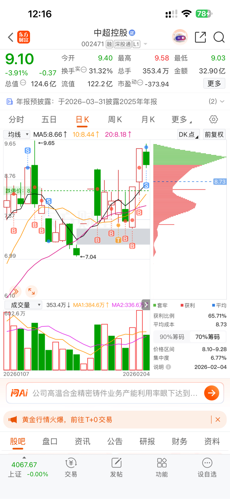 $中超控股(SZ002471)$ 太了解你了。50就出。绝不犹豫。陆陆续续做了1个多月!明天尾盘接点